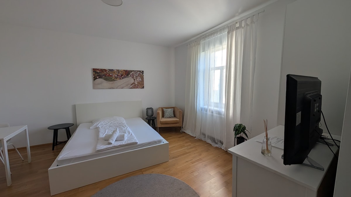 Մենք առաջարկում ենք հարմարավետ բնակարան ՝ առանձին լոգասենյակով (լվացքի - չորանոցով), ննջասենյակով և խոհանոցիկով ։ Խոհանոցը, իհարկե, լիովին հագեցած է սպասքով և էլեկտրական տեխնիկայով: Քնելու տարածքը բաղկացած է երկտեղանի մահճակալից, պահեստային տարածքից, սմարթ հեռուստացույցով դարակից, Wi - Fi - ից, ճաշասենյակից... Բնակարանը լավ է տեղակայված, մոտ 5 րոպե է պահանջվում դեպի գլխավոր երկաթուղային կայարան քայլելու համար: Գրաց քաղաքի կենտրոնը գտնվում է քայլելու հեռավորության վրա ։ Չափը 30 քմ: Մենք խոսում ենք գերմաներեն, անգլերեն: