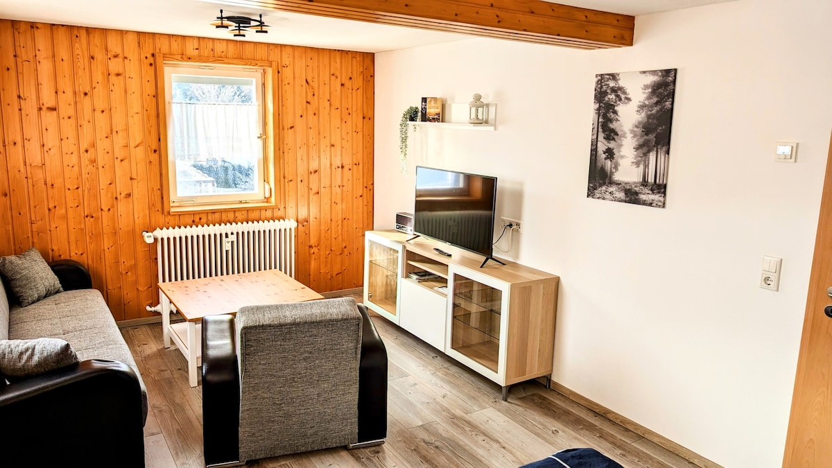Բարի գալուստ Բադ Ուայլդբադի սրտում գտնվող ձեր ժամանակակից անտառային օազիս ՝ մինչև 6 հոգու համար նախատեսված տարածքով ։ Առաջին հարկում գտնվող այս նոր վերանորոգված բնակարանն առաջարկում է 2 ննջասենյակ ՝ զսպանակավոր մահճակալներով, հյուրասենյակ ՝ բազմոցով, լիովին կահավորված խոհանոց, ինչպես նաև ժամանակակից լոգասենյակ և առանձին զուգարան ։ Վայելեք գյուղական վայրերի հիասքանչ տեսարանը ընդարձակ պատշգամբից կամ հանգստացեք նոր ինֆրակարմիր սաունայում: Սպա պարկով կարճատև զբոսանքը ձեզ տանում է անմիջապես քաղաք ։