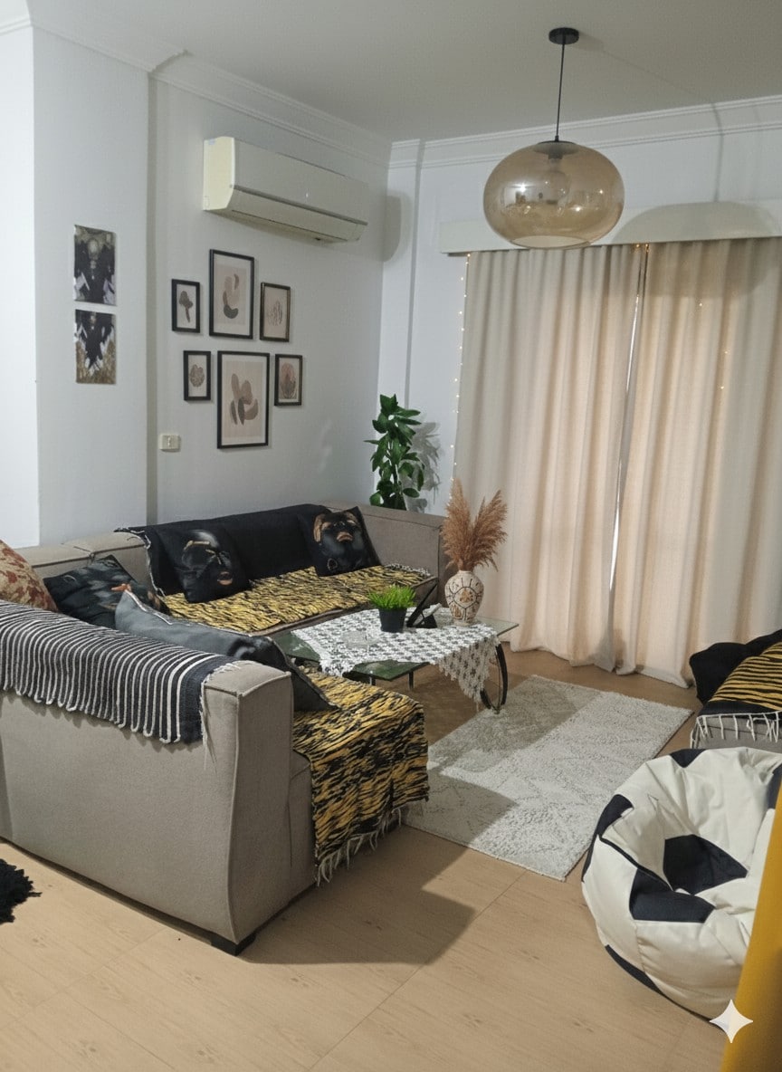 Stay in the luxury stylish 4-bedroom villa in Azha with a double private garden with stunning pool & crystal-lagoon views Enjoy luxury furniture, high-speed WiFi, 2 Smart TVs, premium sound system, and full A/C. The smart kitchen has a microwave, dishwasher, laundry washer, air fryer, stove and oven, and large fridge. With 7 comfy beds this villa is perfect for families seeking a relaxing, upscale escape extra 1500 L.E for person during the whole period of host up to 1 week(for beach access)