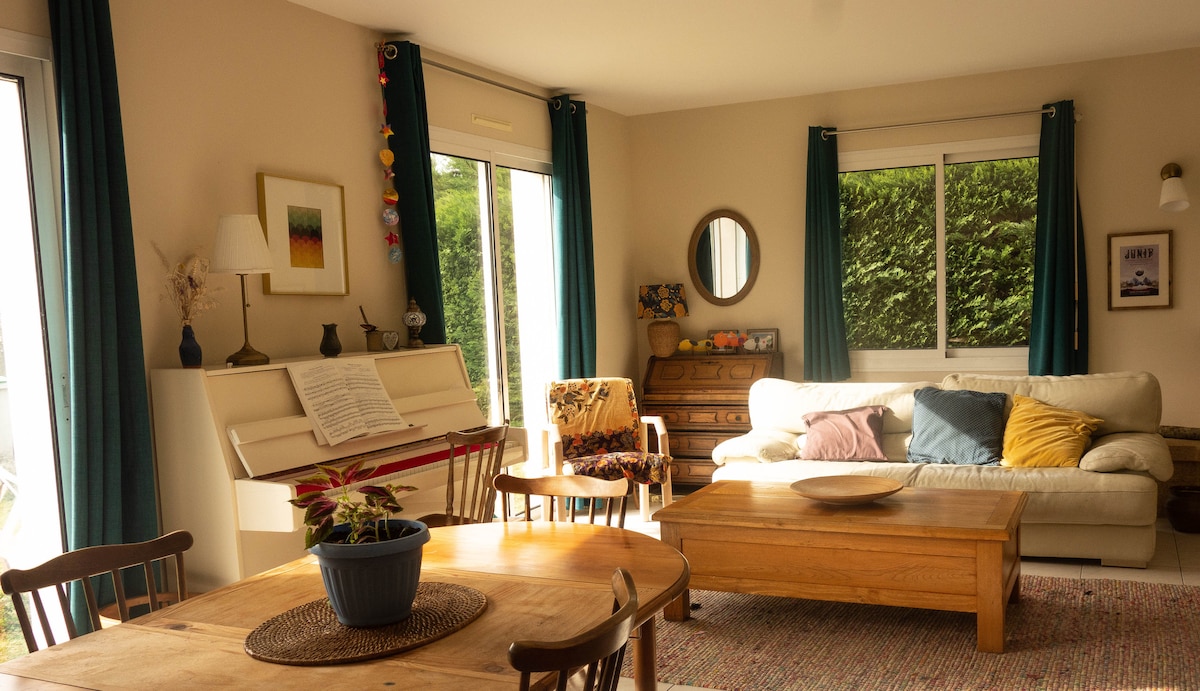 Այս խաղաղ տունն առաջարկում է հանգիստ ամբողջ ընտանիքի համար: Հարմարավետորեն տեղակայված ՝ ավտոբուս, տրամվայ, կինոթատրոն, գրադարան, Ատլանտիս առևտրի կենտրոն, Զենիթ, օդանավակայանից 10 րոպե հեռավորության վրա, Նանտ քաղաքի կենտրոնից 20 րոպե հեռավորության վրա, ծովից 40 րոպե հեռավորության վրա Այս կացարանն ունի 3 գեղեցիկ անկախ ննջասենյակ (տրամադրվում է անկողնային սպիտակեղեն, հովանոցային մահճակալ), կահավորված խոհանոց, հյուրասենյակ (ներառված է Wi - Fi և հեռուստացույց) և լոջիա ՝ դրսի տեսարան վայելելու համար Առանձին և ապահով կայանատեղի իդեալական է ընտանիքի համար