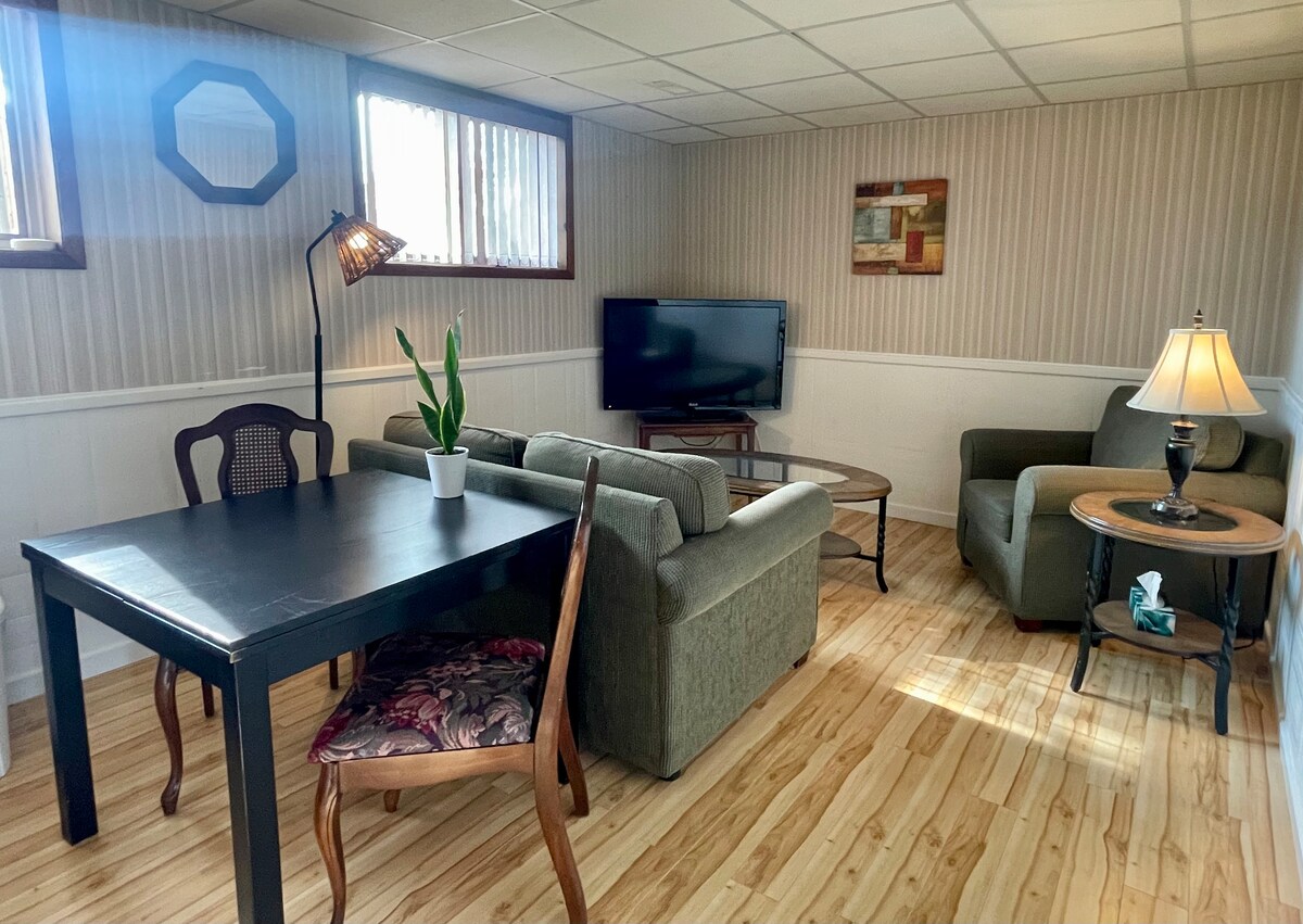 Հանգիստ, թարմ վերանորոգված ստորին հարկաբաժնում բնակարան չորսպլեքսում - 1 ննջասենյակ և 1 լոգասենյակ, - Ինքնուրույն ժամանում Տարածքը ՀՅՈՒՐԱՍԵՆՅԱԿ - Netflix - ով և YouTube - ով հեռուստացույց ՆՆՋԱՍԵՆՅԱԿ - Երկտեղանի մահճակալ ԽՈՀԱՆՈՑ - Խոհանոցային բոլոր պարագաները, որոնք պահանջվում են ձեր սիրած կերակուրը պատրաստելու համար - Ճաշասենյակի սեղան - Առավոտյան վայելեք անվճար տաք սուրճ կամ թեյ ԼՈԳԱՍԵՆՅԱԿ «Մարմարե սալիկապատ լոգարան»