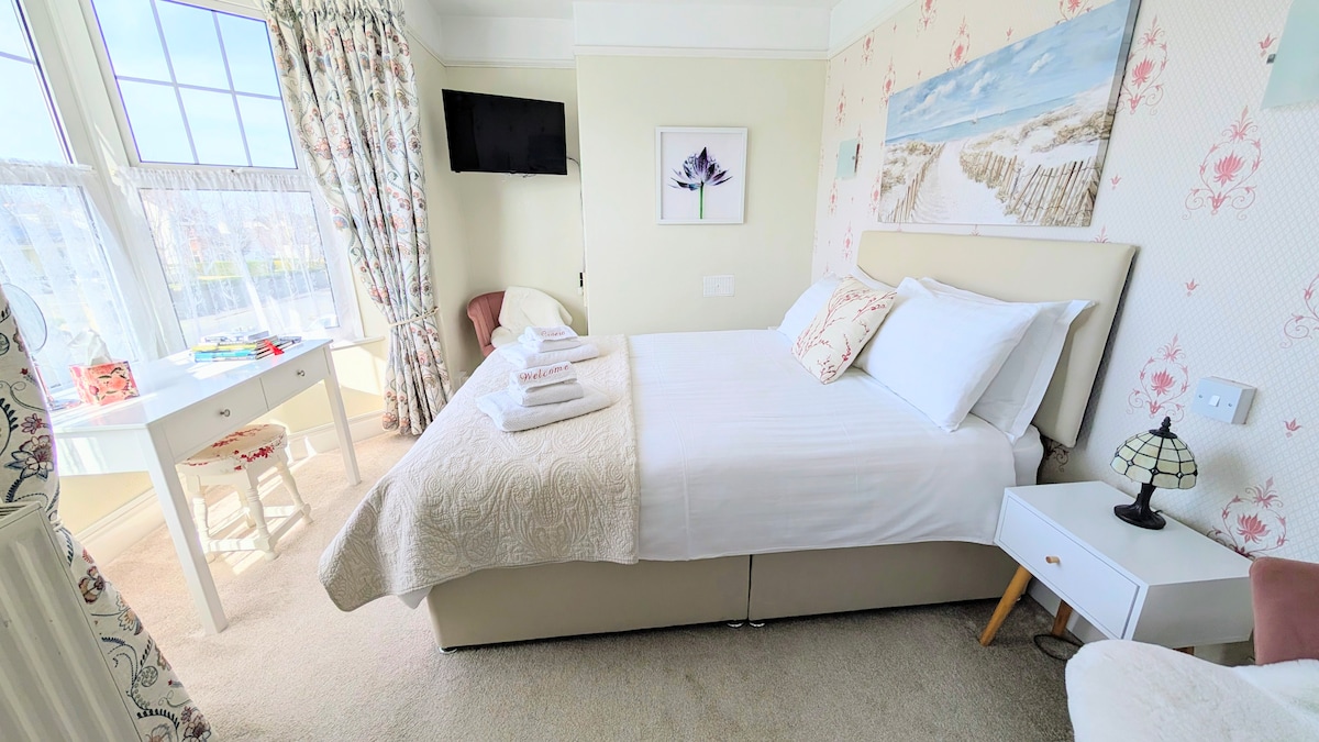 Մենք ունենք առաջին հարկի ընդարձակ առանձնաբաժին ՝ ծովի տեսարաններով, որոնք բաղկացած են Ննջասենյակից, Ensuite - ից, Private Lounge - ից և ըստ ցանկության ՝ ջակուզիից ։ Ջակուզիը 90 £ լրացուցիչ վճար է ՝ անկախ այցի տևողությունից ։ Ննջասենյակում կա մեծ մահճակալ ՝ սմարթ հեռուստացույցով, պահեստ և լոգասենյակ ՝ ցնցուղարանով ։ Հյուրասրահն ունի բազմոց, սմարթ հեռուստացույց և ֆանտաստիկ ծովային տեսարաններ: Մենք տրամադրում ենք թեյի/սուրճի պատրաստման հարմարություններ, միկրոալիքային վառարան, տոստեր և սառնարան և թեթև նախաճաշ: Ներեցեք, երեխաներ չկան ։ Մեքենան խորհուրդ է տալիս