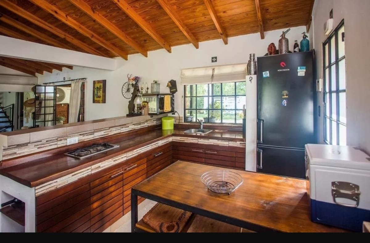 Մենք առաջարկում ենք 2 բնակարան (60 mts2 յուրաքանչյուրը) եւ քոթեջ (32mts2)’հինգերորդ տանը (բնակեցված իր սեփականատերերի), ընդհանուր տարածքով, որը կիսում է այլ հյուրերի եւ մեզ հետ, այգի, լողավազան եւ quincho, երեք գրիլ եւ ավտոկայանատեղի մեքենաների համար, բոլոր սպիտակեղենը եւ չոր նախաճաշը (ողջունելի), Wifi, DTV, A/A: Բնակարանները եւ քոթեջը ունեն երկտեղանի մահճակալ եւ 2 մահճակալ 1 տեղ (բազմոց մահճակալ): Իդեալական է հանգստանալու, հանգստանալու և այլ բնություն սիրող մարդկանց հետ կիսելու համար: