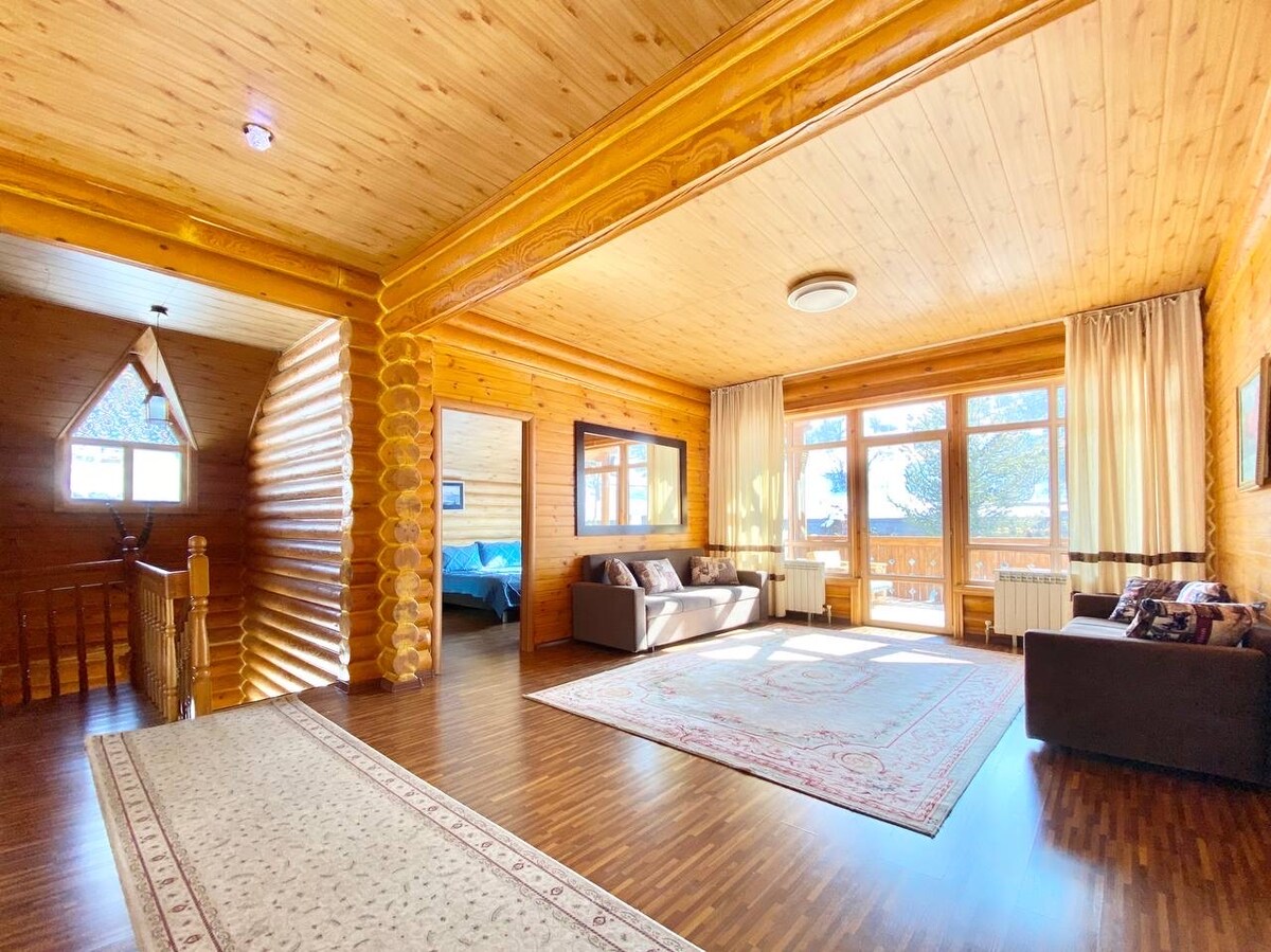Barnhouse-Style Villa Located just 40 minutes from Almaty, this cozy cottage offers seclusion and comfort. Set on a large green plot with two floors, it features three bedrooms, a spacious living room, and a fully equipped kitchen. Enjoy the terrace, indoor sauna, outdoor kitchen, and BBQ. The secured area includes two houses, accommodating up to 6 people. Nestled in the picturesque Talgar Gorge near a river, it's perfect for a nature retreat away from the city's hustle and bustle.