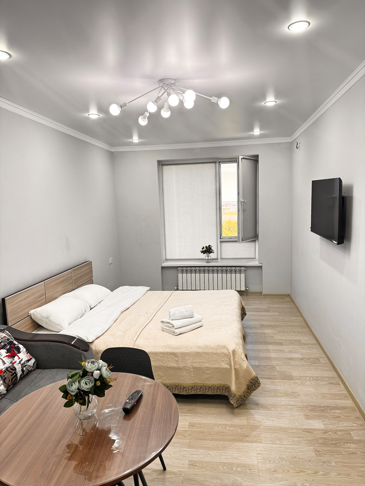 Ժամանակակից և ոճային բնակարան քաղաքում, որը կատարյալ է հանգստի կամ գործնական ուղևորությունների համար ։ Հարմարավետ ննջասենյակ ՝ մեծ մահճակալով, լիովին կահավորված խոհանոցով, ցնցուղով լոգասենյակով և հարմարավետ հանգստի համար անհրաժեշտ բոլոր հարմարություններով ։ Անվճար Wi - Fi, հոսքային հեռուստատեսություն և օդորակիչ ։ Կատարյալ վայր ձեր այցի համար Ընդարձակ բնակարան ՝ դիզայներական վերանորոգմամբ և հարմարավետ մթնոլորտով ։ Բոլոր մանրամասները մտածված են ամենափոքր մանրամասներով ՝ նորաձև կահույք և դեկոր, չեզոք գույներ և շեշտադրումներ, որոնք ստեղծում են հանգստի մթնոլորտ