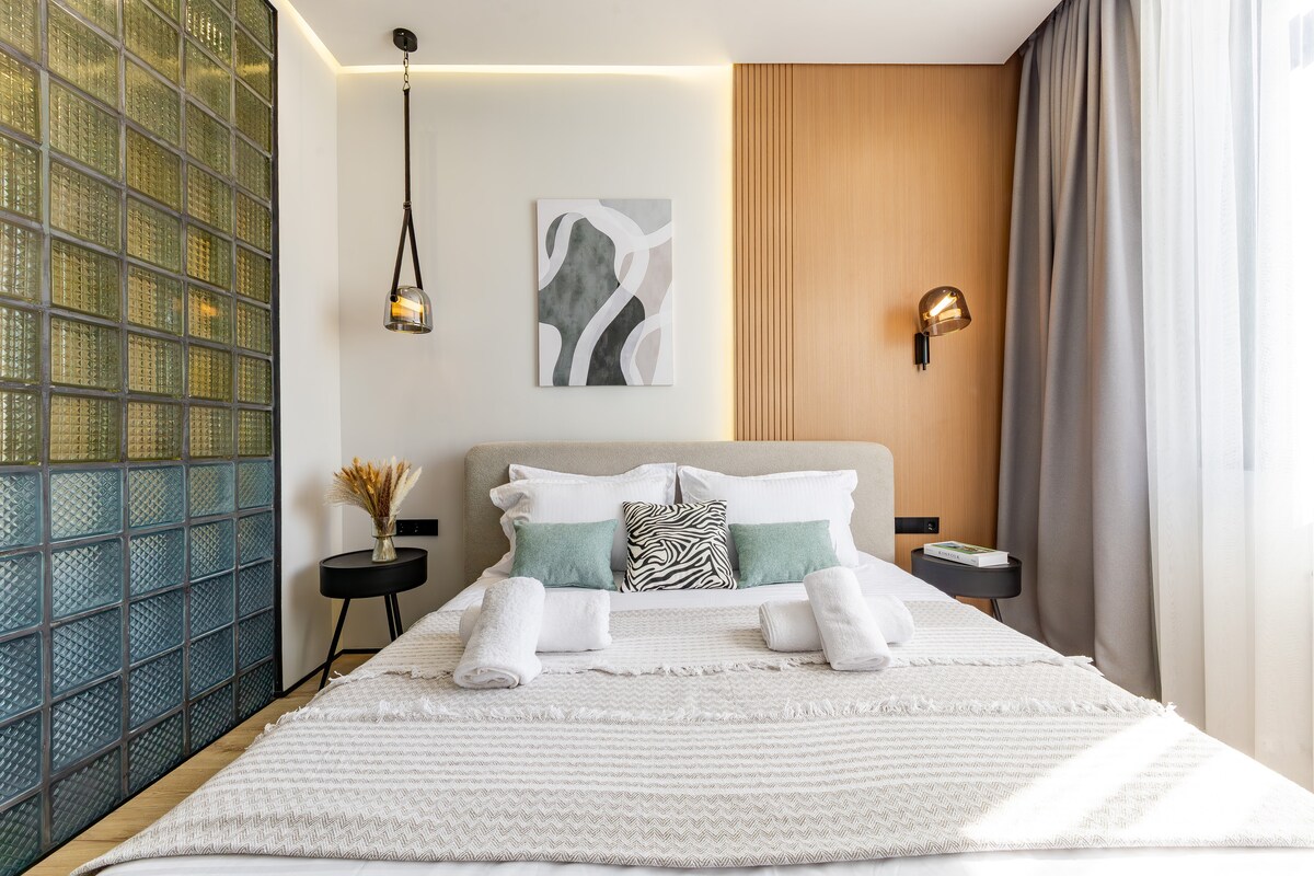Добро пожаловать в апартаменты класса люкс в бурно развивающемся районе столицы, недалеко от главных достопримечательностей города Астана 🔥 Дизайн этой стильной квартиры выполнен в стиле лофт с элементами эко-стиля и colour block. 🚿 Тропический душ прямо с потолка подарит подлинное ощущение теплого тропического дождя не выходя из дома. 🛏️ Удобный ортопедический матрас, роскошная двуспальная кровать, шторы блэкаут, белоснежная постель из 100% хлопка подарит крепкий и здоровый сон.
