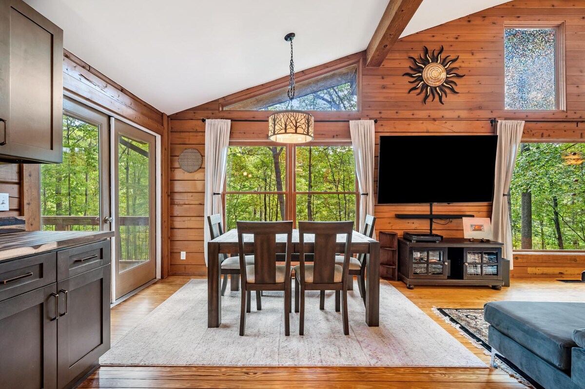 Հարմարավետ տնակ անտառում ՝ գեղեցիկ լեռնային տեսարաններով, որոնք ծածկված են հետևի տախտակամածից ։ Կատարյալ է բնության սիրահարների, զույգերի, միայնակների համար: Իդեալական է խաղաղ հանգստի կամ տեղական գինու կամ գարեջրի արահետ այցելելու համար ։ Մինչ հեռավոր, նաեւ հարմար բազա է այցելել տարածքի տեսարժան վայրերը, արշավներ եւ հեշտ քշել դեպի C'ville. Հանգստացեք ծածկած հետևի տախտակամածի վրա ՝ դիտելով մայրամուտն ու վայրի բնությունը ։ Ավելի քան 2 մղոն անտառապատ արահետներով սեփականության տարածքում հյուրերի օգտագործման համար ։ 15 -20 րոպե քայլեք անտառներով արահետներով (այս զբոսանքի մի մասը բլրի վրա է )՝ Ռոքֆիշ գետ մուտք գործելու համար ։