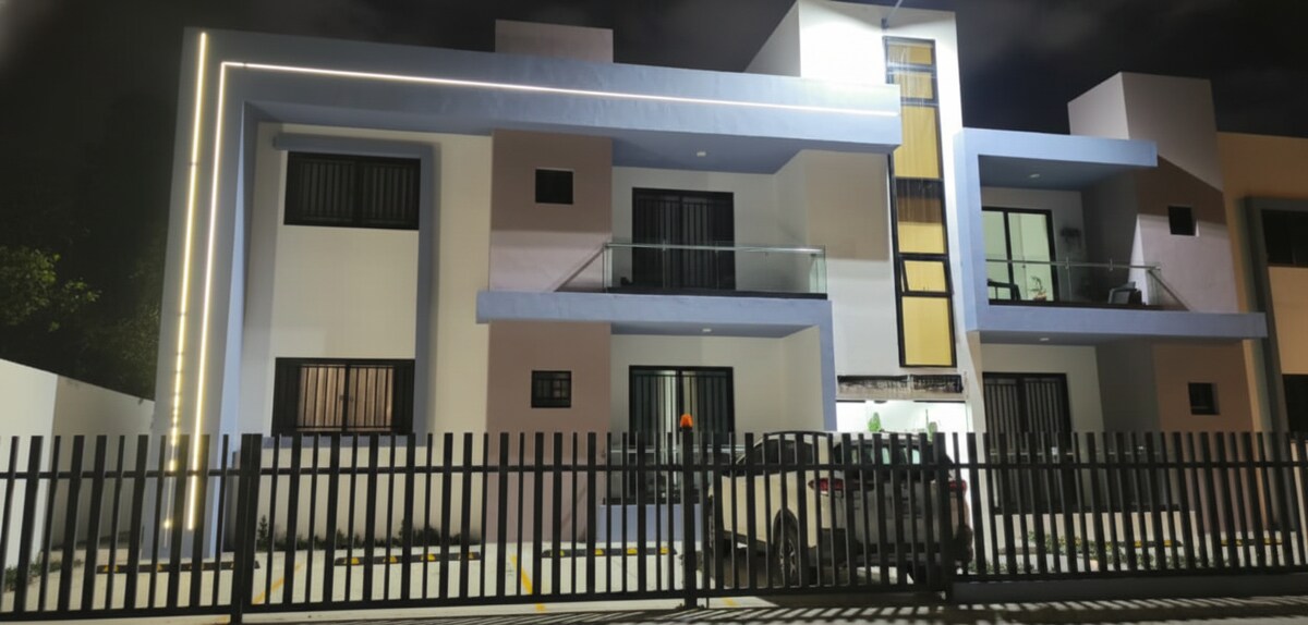Relájate con toda la familia en este alojamiento donde la tranquilidad, calidez y armonia se respira. Disfruta este acogedor apartamento y cómodo el alojamiento de 2 dormitorios principal con aire acondicionado y TV, abanico de techo, con sala con TV, comedor, cocina equipada, wifi, agua caliente, scrines en todas las ventanas y cortinas tipo zebra. - 25 minutos del aeropuerto Internacional del Cibao - 5 minutos del centro de la cuidad de moca - 5 minutos del hospital y centros comerciales.