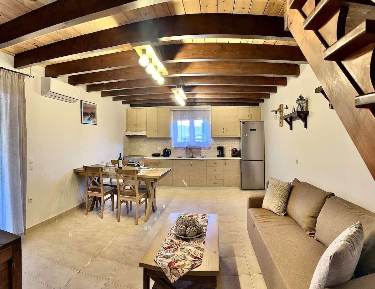 Ένα γαλήνιο καταφύγιο με μαγευτική θέα στη θάλασσα. Από το μπαλκόνι, το ηλιοβασίλεμα βάφει τον ουρανό με χρώματα που κόβουν την ανάσα δημιουργώντας μια ατμόσφαιρα απόλυτης χαλάρωσης. Βρίσκεται κάτω από το ιστορικό μοναστήρι του Αγ. Ιωάννη, μέσα στη φύση λίγα μόλις λεπτά από κρυστάλινα θαλασσινά νερά. Ο τόπος προσφέρει δραστηριότητες από θαλάσσια σπόρ εώς ιππασία, ενώ το σπίτι αποπνέει ζεστασιά και ηρεμία, ιδανικό για ξέγνοιαστες στιγμές