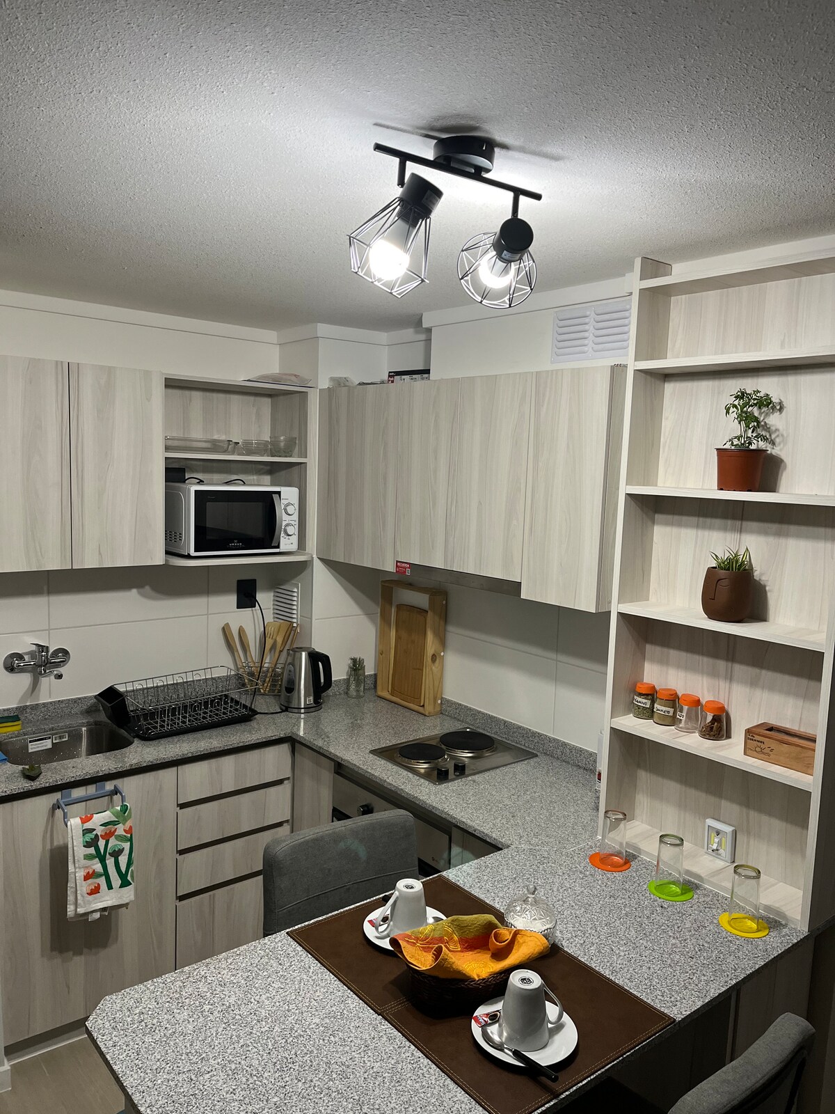 Նոր բնակարան ՝ լիովին կահավորված, որը գտնվում է մարզադաշտի դիմաց, ավտոբուսային տերմինալից 1 թաղամաս հեռավորության վրա ։ Անվճար առանձին, ծածկված կայանատեղի (դռնապանը բացում և փակում է դարպասը, այն առանց հեռակառավարման վահանակի է )։ Հանգիստ և զուսպ, կենտրոնական, գերազանց շարժում ։ Օդորակիչով ՝ ցրտի և ջերմության համար ։ Թվային կոդով և կոդով բնակարան մուտք գործելու անկախ հնարավորությամբ (առանց բանալու, կոդը բանալին է )։ Կոնսիերժ ՝ շուրջօրյա ։ Հանգիստ և բնակելի հատված ։ Ներսում ծխելն արգելվում է, միայն պատշգամբում ։