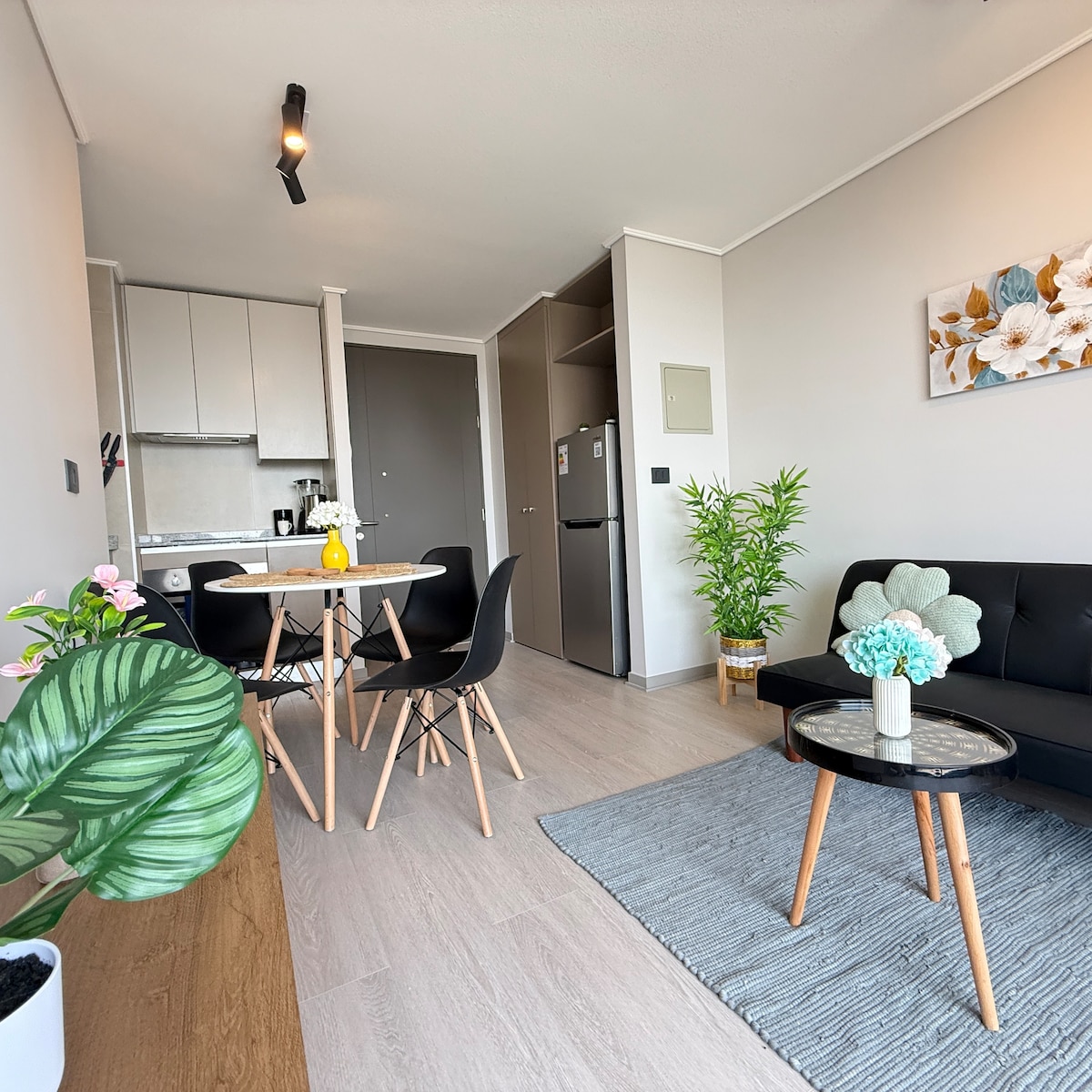 Վայելեք ժամանակակից հանգիստ նոր շենքում, որը գտնվում է ñuñoa - ի սրտում, Բուստամանտե զբոսայգու հարևանությամբ 🌿 և Իրարազաբալի մետրոյից մի քանի քայլ հեռավորության վրա🚇 ։ Այն ունի ՝ ️1 ю Ննջասենյակ ՝ երկտեղանի մահճակալով և թախտով ։ ️2 ю Լիովին կահավորված խոհանոց Nespresso սուրճի ապարատով☕️ ️3 ю լոգասենյակ ՝ լոգասենյակով և հարմարություններով ։ ️4 ասադոր սմարթ հեռուստացույց ՝ Netflix - ով ։ ️5 ю 600 Մբիթ/վ արագությամբ լուսարկիչ Wi - Fi ։ 6️ю ժամանակակից սառնարան ։ ️7 ասադոր Պրեմիում անկողնային պարագաներ ։ 🚭 Ծխելը միայն տեռասում (Ley 20.660 )։ ✨ Ձեր ժամանակավոր տունը սպասում է ձեզ ։