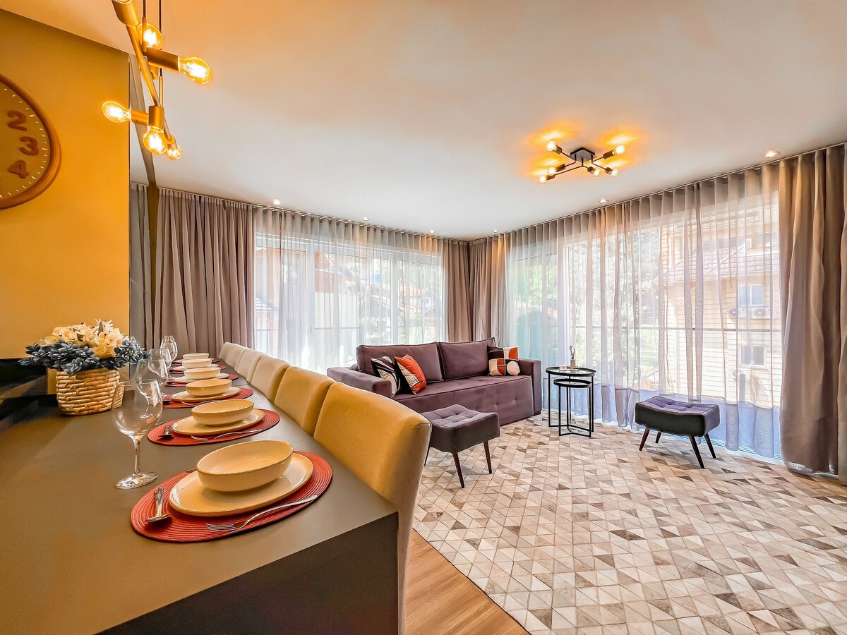 Շքեղ բնակարան բացառիկ կոնդոմինիումում ՝ հայտնի փակ փողոցից ոտքով 5 րոպե հեռավորության վրա ։ Եկեք անմոռանալի պահեր հմայիչ բնակարանում ՝ ընդհանուր ենթակառուցվածքով, բնությանը մոտ, բուխարիով, տաք և սառը օդորակիչով, հենց այն հարմարավետությամբ, որն արժանի եք Սերրա գաուչայի լավագույն վայրերը վայելելու համար: Ձեր փոքր տնային կենդանին նույնպես ողջունելի է ։