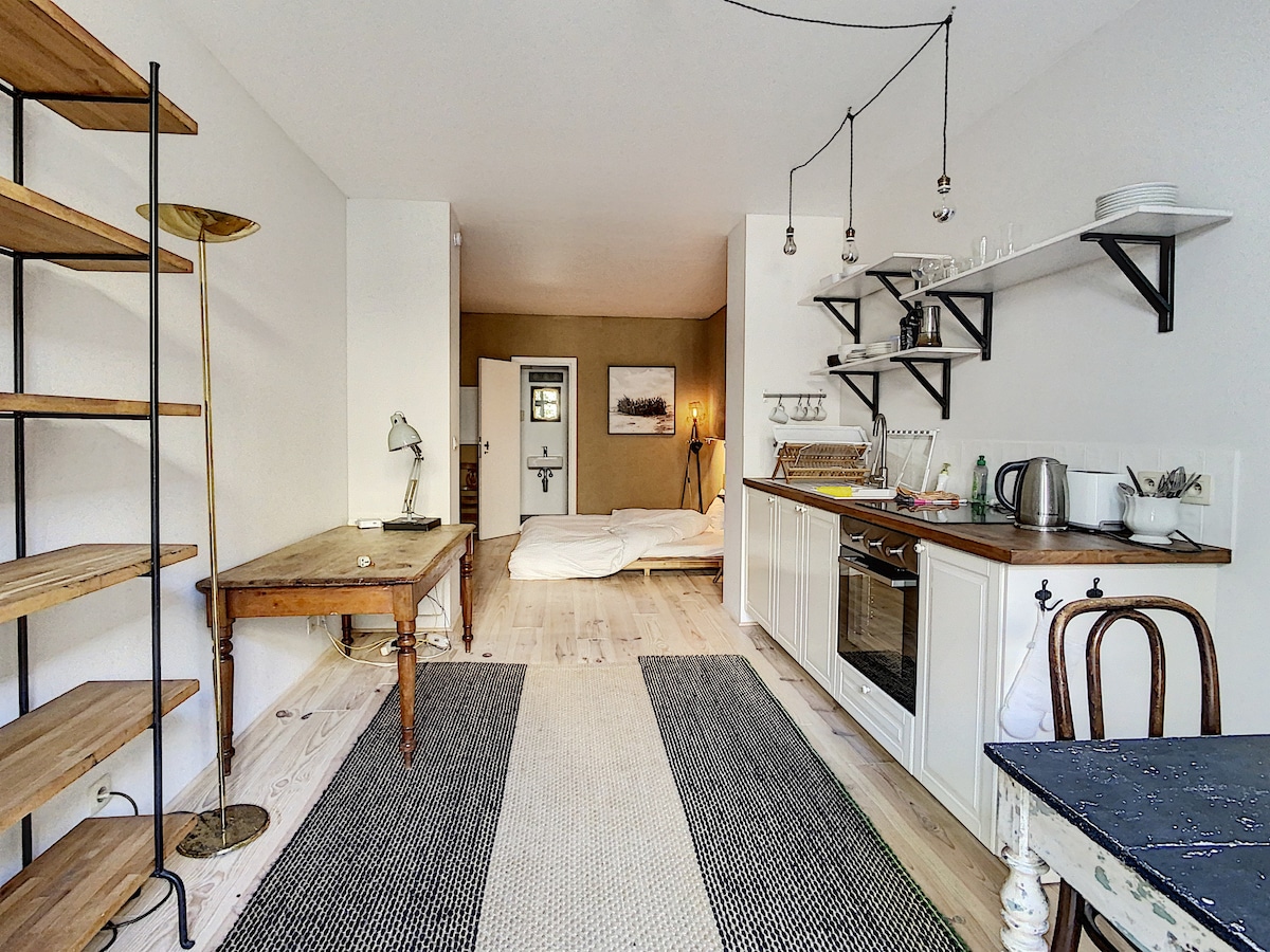 33 մ2 մակերեսով կահավորված ստուդիա ՝ փոքր հանգիստ և հստակ շենքում ։ Շալեվե և ֆունկցիոնալ ։ Երկուսի համար նախատեսված ստուդիան հարմարավետորեն գտնվում է Եվրոպական թաղամասի մոտակայքում ։ Place Jourdan - ը աշխույժ է մեծ թվով բարերով և ռեստորաններով, օրգանական և նրբաճաշակ սննդի խանութներով, սուպերմարկետներով: Մոտակայքում գտնվող մշակութային կենտրոն և թատրոն ։ Մոտակայքում գտնվող Parc Léopold և Parc du Cinquantenaire ։ Շումանի մետրոյի կայարանը (5' ոտքով) 4' Գրանդ Փլեյսից (Գարե Սենտրալ կայարան )։
