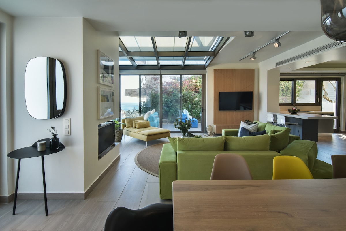 Էգեյան կապույտ պենտհաուս ՝ լողավազանով և սաունայով