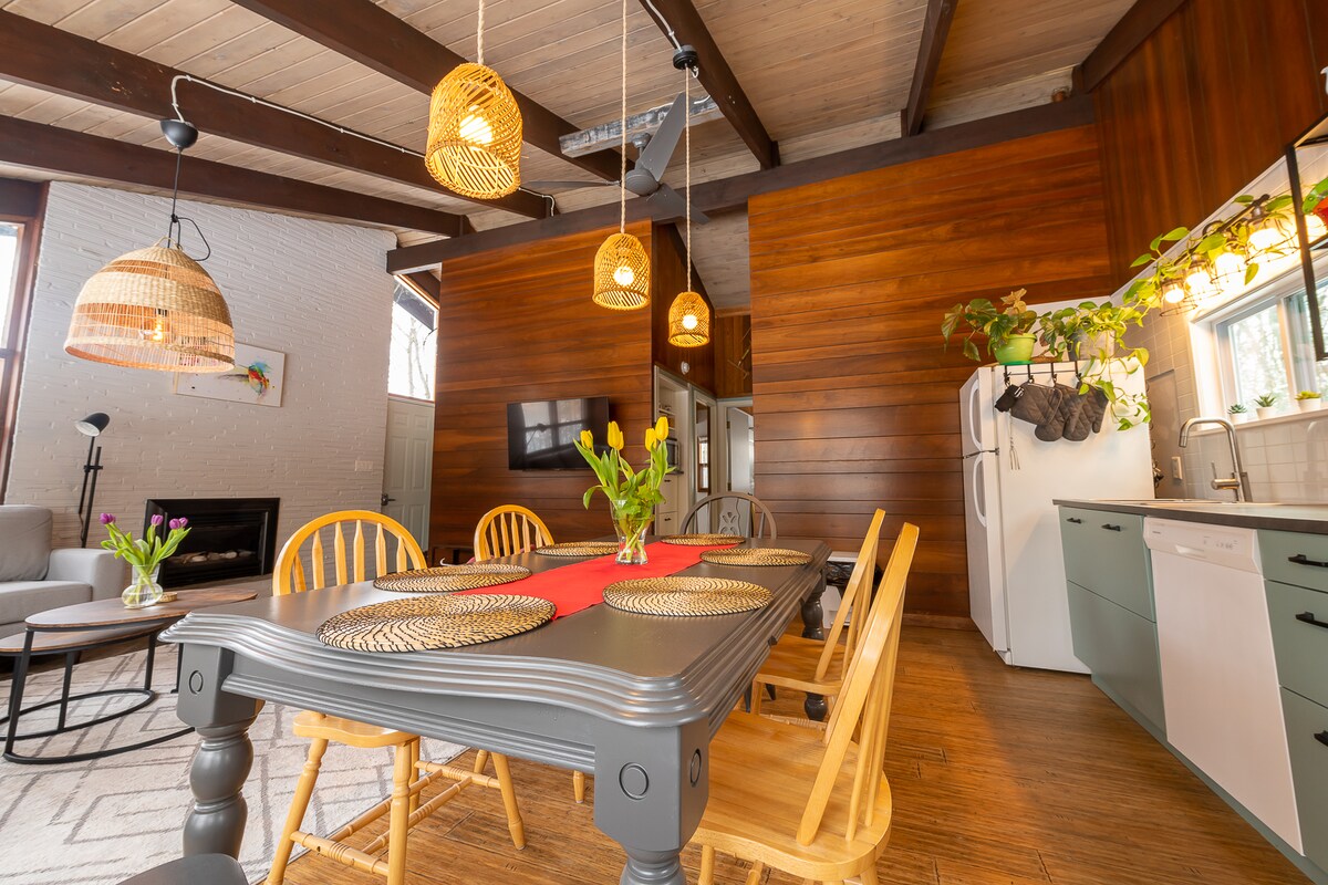 Բարի գալուստ Triangle House, եզակի երկտեղանի եռանկյունաձև տուն, որը գտնվում է 1.7 ակր մակերեսով, որը գտնվում է Կոնեստոգո գետի վրա Միայն 6 րոպե հեռավորության վրա StJacobs կենտրոնից, 1.5 ժամ հեռավորության վրա Տորոնտոյից, 15 րոպե հեռավորության վրա Waterloo համալսարանից եւ 25 րոպե Elora - ին: Բերեք ամբողջ ընտանիքին: Այս 3 մահճակալը, 3 լոգարանը հարմարավետորեն քնում է 6 ժամ: Վայելեք գյուղական վայրերում ՝ փռված տախտակամածից և հիմքերից ՝ միաժամանակ վայելելով ժամանակակից տան բոլոր հարմարությունները ։