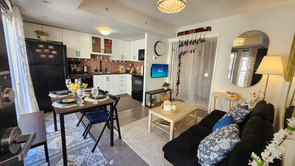 Լիովին վերանորոգված ֆրանսիական ոգեշնչմամբ առանձնաբաժին Տորոնտոյի սրտում ։ ✨ Փայտե հատակներ, անհատականացված ֆրանսիական դռներ և նորաոճ խոհանոց և սեզոնային դեկոր (աշուն, Հելոուին, Սուրբ Ծնունդ, Ամառ )։ Քայլեր Ռոջերս կենտրոնից, Ռիփլիի ակվարիումից, BMO դաշտից (Ֆուտբոլի աշխարհի առաջնություն) և գերժամանակակից King/Queen բարերից և ռեստորաններից: Շենքի առավելությունները ՝ լողավազան, մարզասրահ, սաունա, երեկույթների սենյակ, շուրջօրյա անվտանգություն, կայանատեղի ։ Բացառիկ հավելումներ, ինչպիսիք են խոհարարը, մեքենաների վարձույթը և օդանավակայանից ուղևորություն. մանրամասների համար դիմեք հյուրընկալողին ։