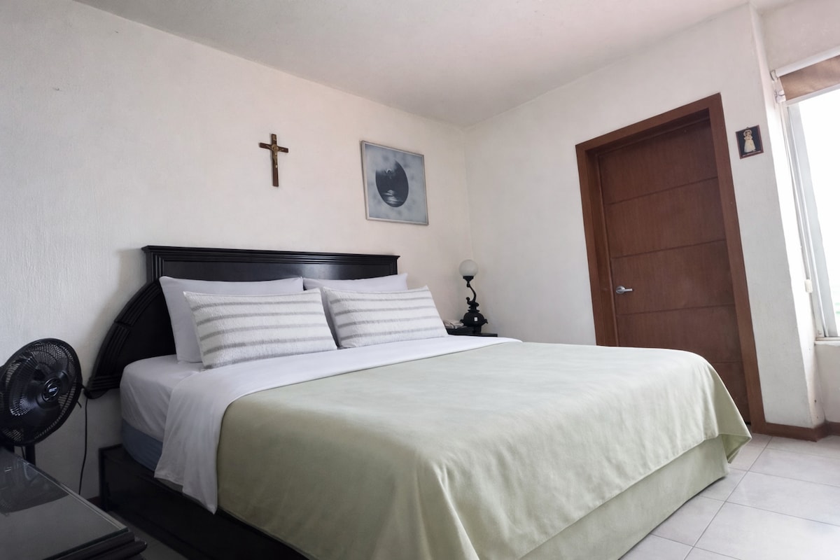Queen Bed, A/C, desk with Fast Wi-Fi, Expo-GDL