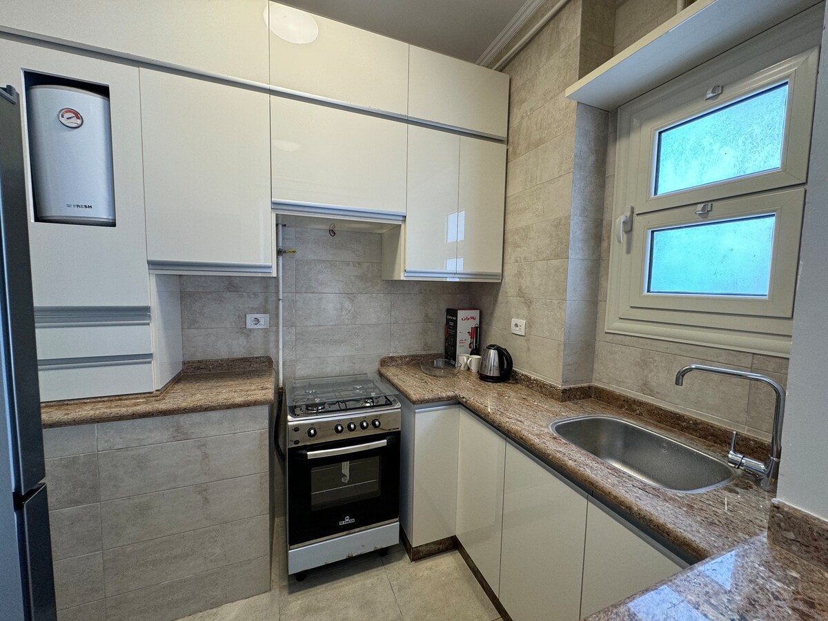 Հարմարավետ 2 ննջասենյակով բնակարան Սմուհայում/Սիդի Գաբերում, որն ամբողջությամբ կահավորված է օդորակիչով, Wi - Fi - ով և պահակակետով պաշտպանված մուտքով շենքով ։ Անվճար կայանատեղի մոտակայքում ։ Սիդի Գաբերի երկաթուղային կայարանից և ավտոբուսային տերմինալից մի քանի քայլ հեռավորության վրա ՝ մոտակայքում գտնվող ավտոբուսներով, միկրոավտոբուսներով և տրամվայներով ։ Քայլեք կամ կարճ տաքսիով ուղևորվեք դեպի Կոռնիչե ՝ կանաչ պլազա առևտրի կենտրոնից, զահրան մոլից, խանութներից, սրճարաններից և շուկաներից րոպեներ հեռու ։ Կենտրոնական, աշխույժ տարածք ՝ Ալեքսանդրիայի գլխավոր տեսարժան վայրից հեշտությամբ օգտվելու հնարավորությամբ ։ ցանկացած պահի կարող եք կապվել ձեզ հետ ցանկացած հարցով կամ խորհրդով ։