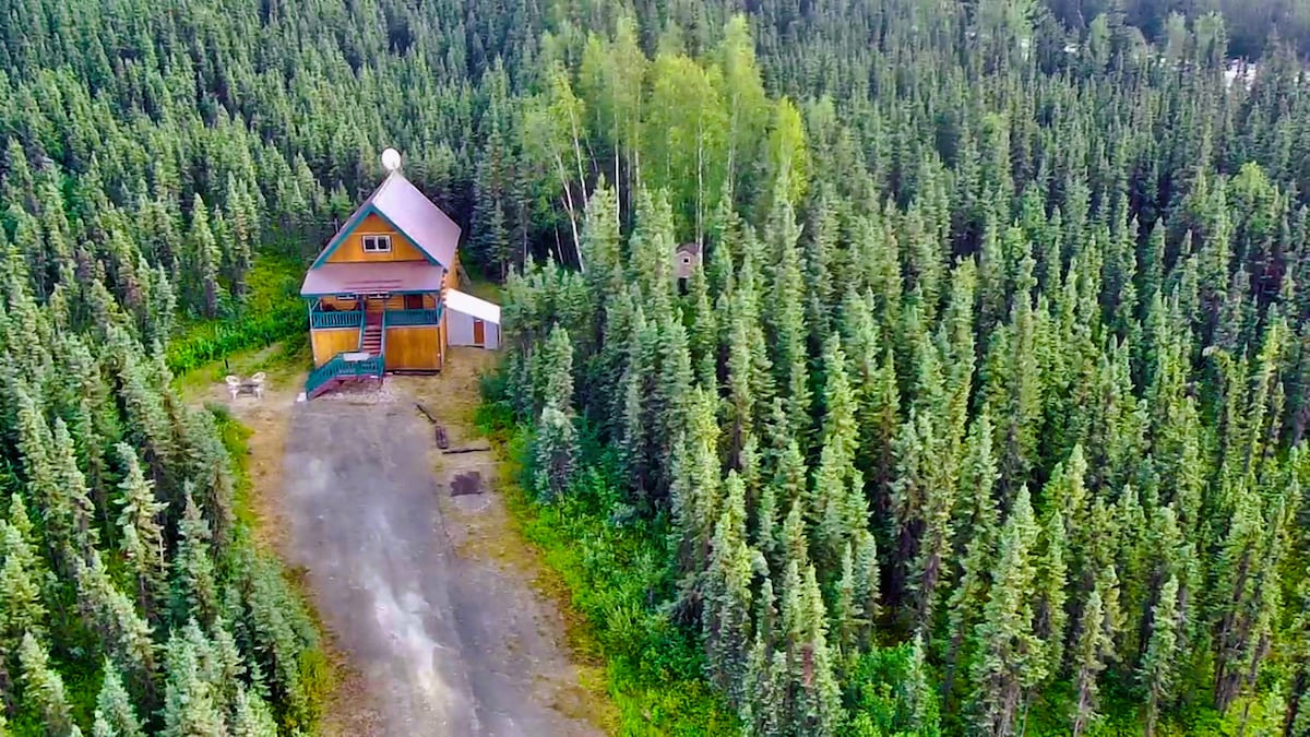 Գեղեցիկ տնակ անտառում, ջակուզի, ուղևորություն դեպի Դենալի