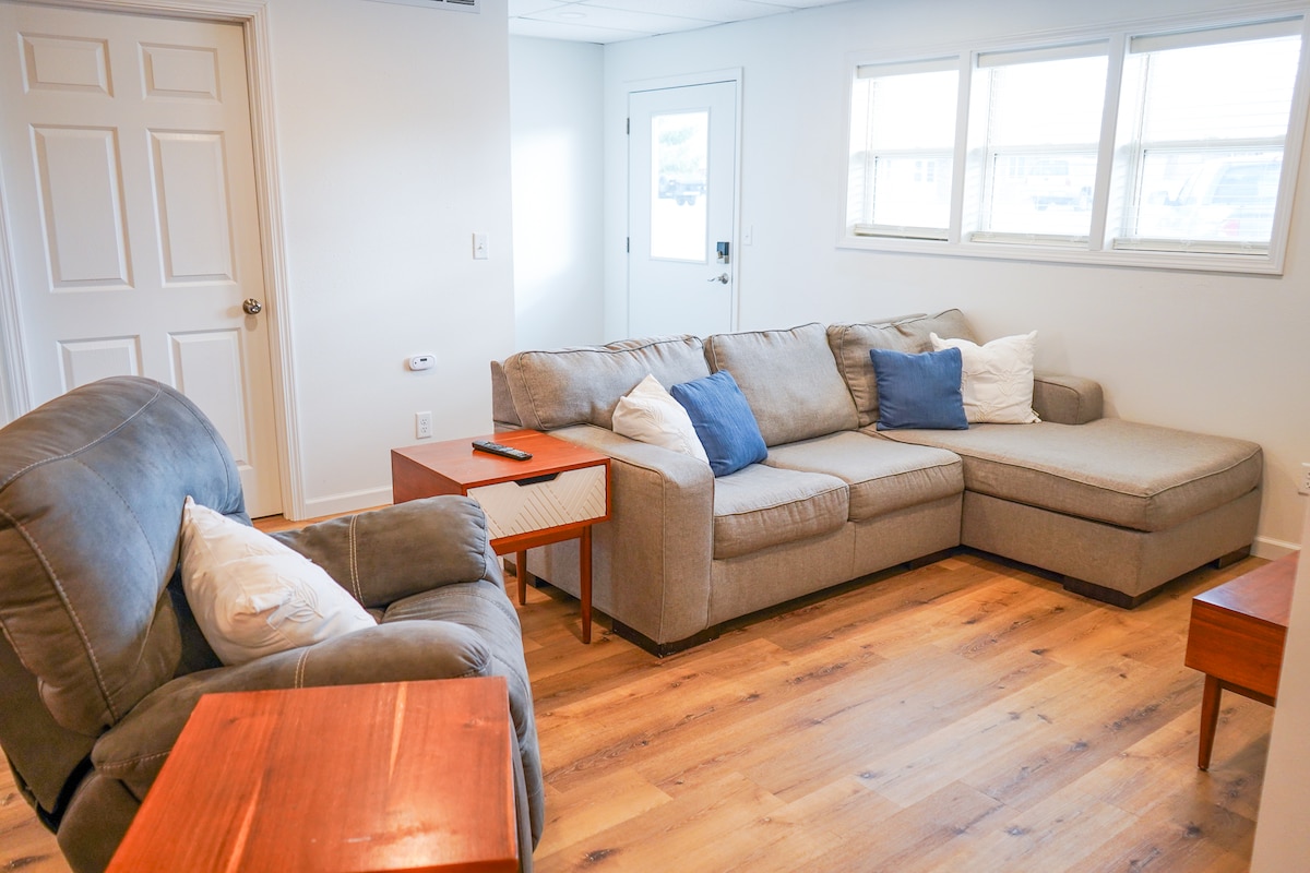 Բացահայտեք փոքր քաղաքի խաղաղությունն ու հանգստությունը մեր գեղեցիկ վերանորոգված ժամանակակից ագարակ - ստուդիայի բնակարանում, որը գտնվում է Ֆոկպորտում (IA )։ Գտնվելով Լոնգվեյի տնակում ՝ հյուրերի համար հասանելի են բասկետբոլի ամբողջական խաղահրապարակ, եգիպտացորենի անցքի տախտակներ և պինգվիններ: Մենք նաև ունենք հիանալի մասնավոր բար կամ մեծ խմբերի համար ամբողջական խոհանոց և ճաշասենյակ ամրագրելու տարբերակներ: Այս վայրն իսկապես ձեզ դուրս է տանում ծեծված ճանապարհներից, որպեսզի բացահայտեք ժամանակի ընթացքում անծայրածիր մի աշխարհ: