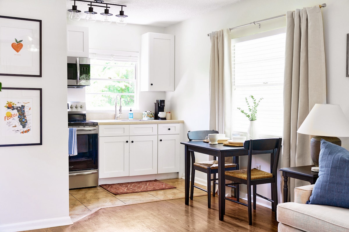 Հանգստացեք և վայելեք հանգիստ և նոր ձևափոխված մասնավոր հյուրերի առանձնաբաժին, որը գտնվում է Օռլանդոյի կենտրոնում ՝ Օռլանդոյի կենտրոնում ։ Առանձնանում է լիարժեք խոհանոցով, ընդարձակ հյուրասենյակով և շքեղ երկտեղանի մահճակալով ՝ խաղաղ և հաճելի հանգստի համար: Մասնավոր 2 - րդ հարկի մուտք և հարմար ինքնուրույն ժամանում ։ Հիանալիորեն գտնվում է ռեստորաններից, առևտրի կենտրոններից և զբոսայգիներից ոտքով հեռու ՝ ապահով և ընտանեկան հանգստի համար հարմար թաղամասում ։ Հեշտ մուտք դեպի Կենտրոն Օրլանդո, Թեմատիկ զբոսայգիներ և Ձմեռային զբոսայգի/Park Ave.