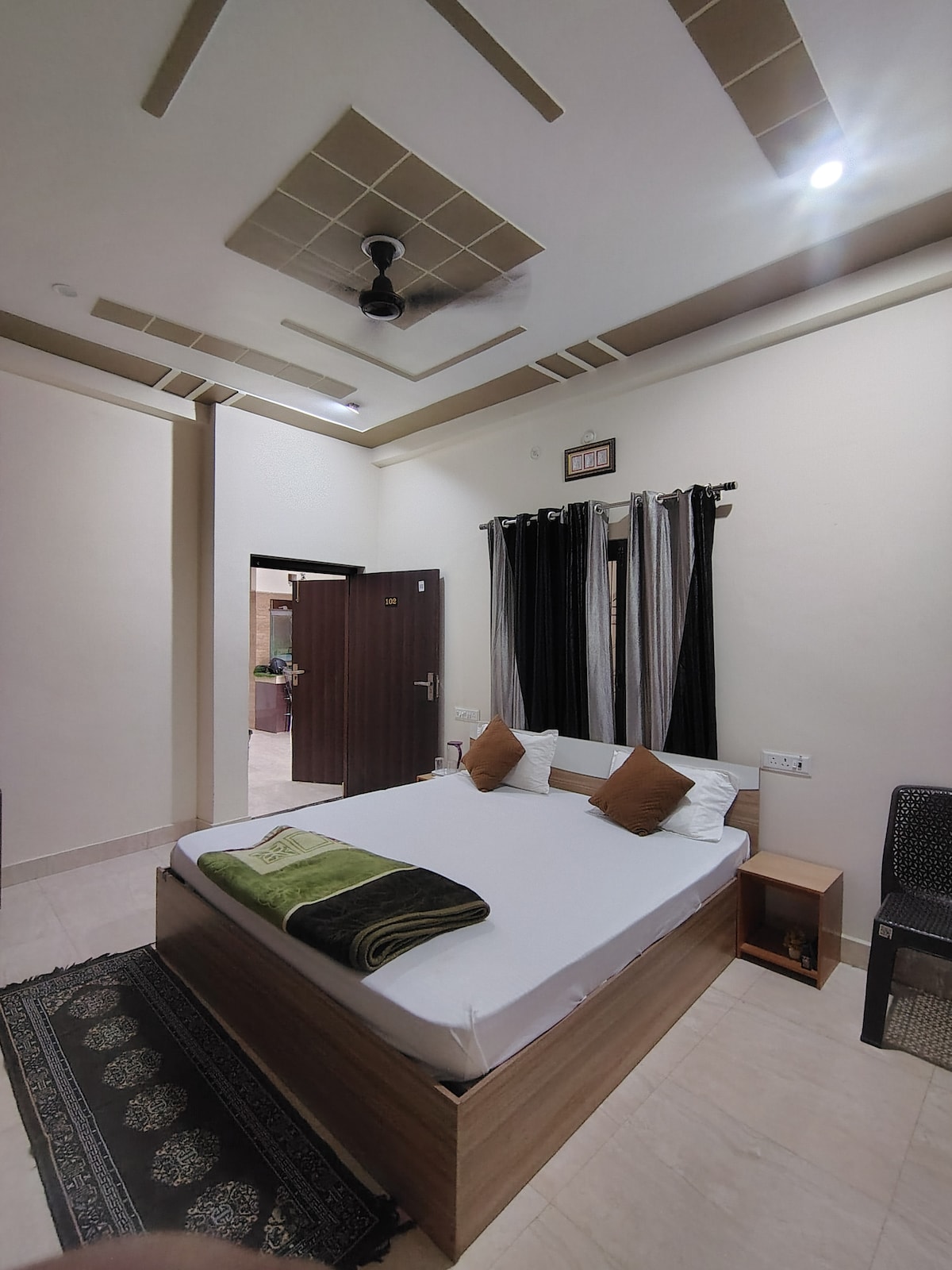 A clean, private room with a comfortable king-size bed at the most affordable price point in the holy city of Ayodhya. Best for: Solo travelers | Couples | Budget-conscious pilgrims.