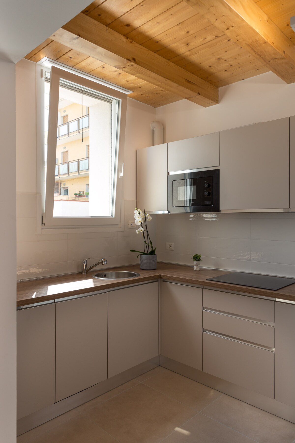 Հարմարավետ նոր վերանորոգված բնակարան ՝ հանգիստ շենքի առաջին հարկում ։ Կազմված է կահավորված խոհանոցից, մեծ երկտեղանի ննջասենյակից ՝ ըստ ցանկության լրացուցիչ մահճակալով, ժամանակակից լոգասենյակից ՝ ցնցուղով, բացօթյա բակից և լվացքասենյակից ։ Ծովը հեշտությամբ հասնում է տան կողքի հետիոտնային ստորգետնյա անցուղով ։ Ավտոբուսի կանգառը ՝ դիմացը, կայարանը ՝ 500 մ հեռավորության վրա, օդանավակայանը ՝ 8 րոպե ։ Ռեստորաններին, սուպերմարկետներին և տարածքի հիմնական տեսարժան վայրերին մոտ: Wi - Fi և օդորակիչ