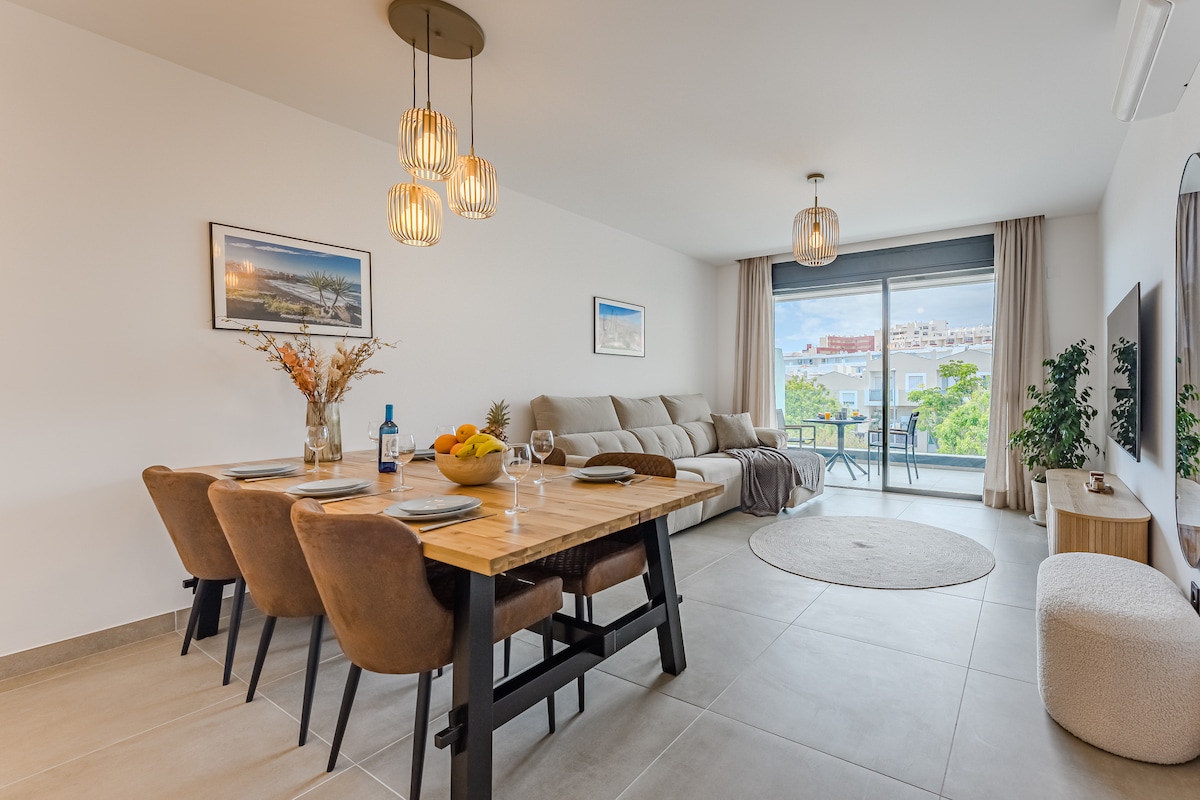 Relax with your friends or family at our minimalist and peaceful apartment, equipped, modern and bright! Located in the residential area of Fañabé, this charming all exterior apartment has 2 spacious bedrooms with fitted closets, 2 large and complete bathrooms, one located within the main bedroom. Fully equipped kitchen. - Spacious living room with a chaise longue, Smart TV and free high speed internet of 300MB and 4K SmartTV. Easy peasy free street parking!