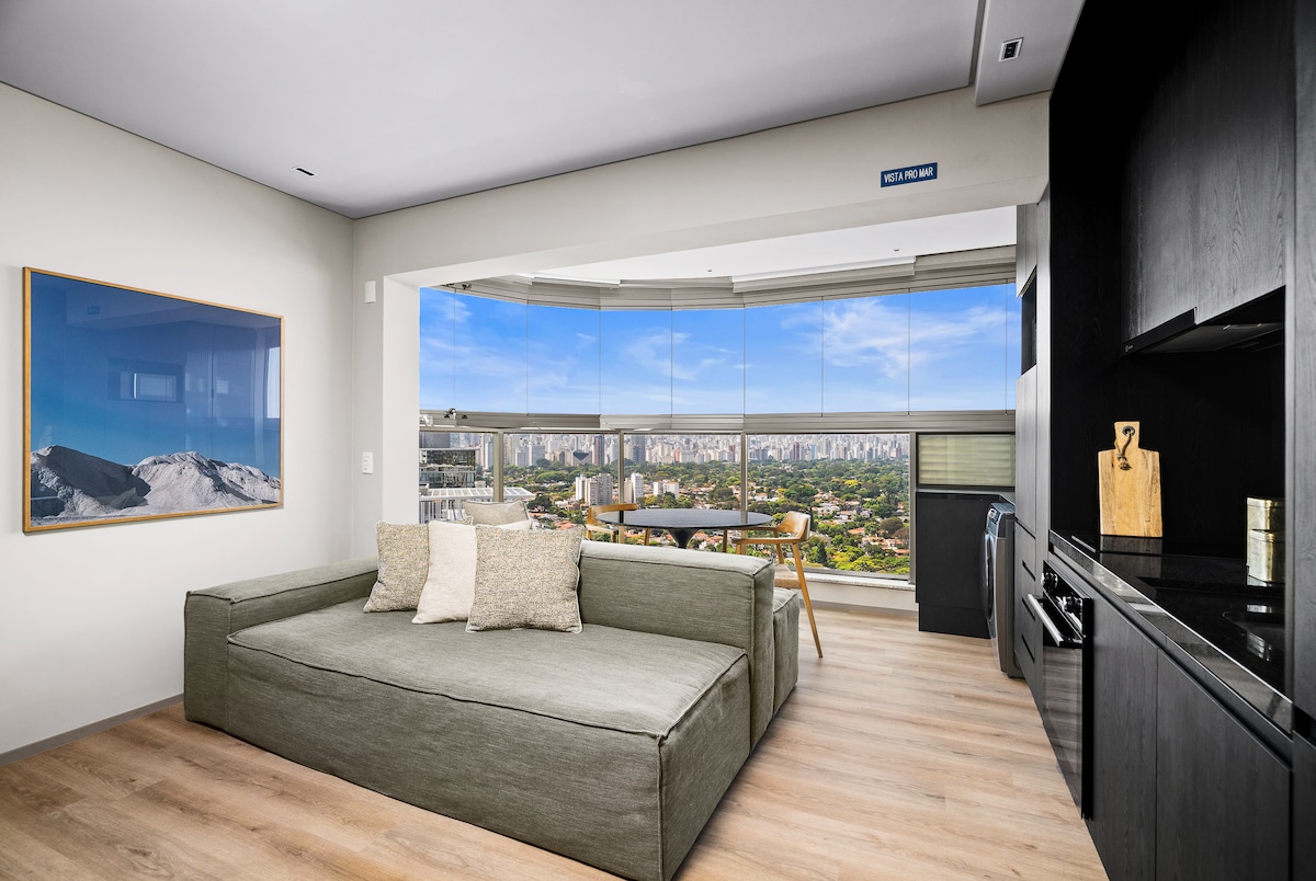 Բուտիկ - ստուդիա ՝ Սան Պաուլու քաղաքի ամենագեղեցիկ տեսարաններից մեկով ։ Տեղադրված է մետրոյից ոտքով 2 րոպե հեռավորության վրա ։ Լիովին կահավորված խոհանոց ՝ փայտե դռնից թաքնված սառնարանով ։ Wi - Fi, օդորակիչ և սմարթ հեռուստացույց ՝ 55 դյույմ ։ Ինքնուրույն ժամանում ՝ սմարթ էլեկտրոնային կողպեքով ։ Խաղացեք թենիս կամ մարզասրահ և հետո հանգստացեք լողավազաններում (բացօթյա կամ տաքացվող փակ) և սաունաներում (թաց կամ չոր )։ Ընդհանուր տարածքը ներառում է նաև համատեղ աշխատելու տարածքներ և լվացքատուն ։ Այցելուները պետք է նախկինում գրանցված լինեն դիմացի տարածքում ։