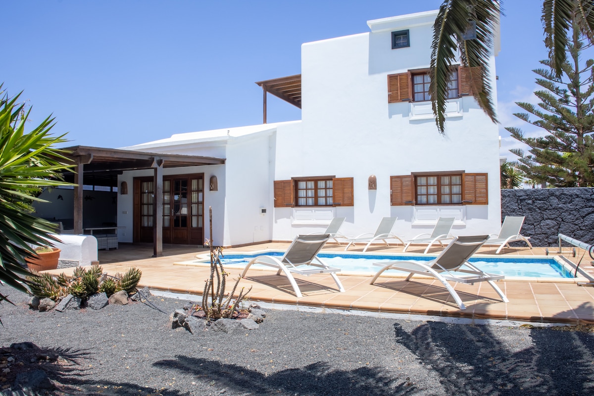 Ընդարձակ վիլլա Պլայա Բլանկայում, Լանսարոտեի հարավում ։ Համայնքի մի անկյունում գտնվող նրա բացառիկ տեղադրությունը մեծ հանգստություն է հաղորդում բաց տարածքներով շրջապատված լինելու համար ։ Դրա կողմնորոշումը ձեզ կտրամադրի Ատլանտյան օվկիանոսի արևմուտքից բացվող տեսարաններ ՝ բացառիկ մայրամուտներով: Առանձին ջեռուցվող լողավազանով հայրենի այգին և մանղալով բացօթյա ճաշասենյակը թույլ կտան վայելել մեր սիրելի կղզու միկրոկլիմայի կողմից առաջարկվող հիանալի երեկոները: