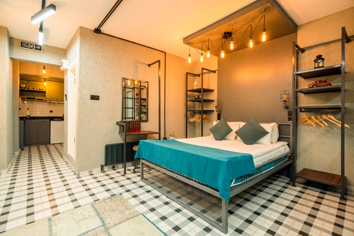 Գալատայի պատմական լոֆթ բնակարան | 1BR և թախտ + օդորակիչ
