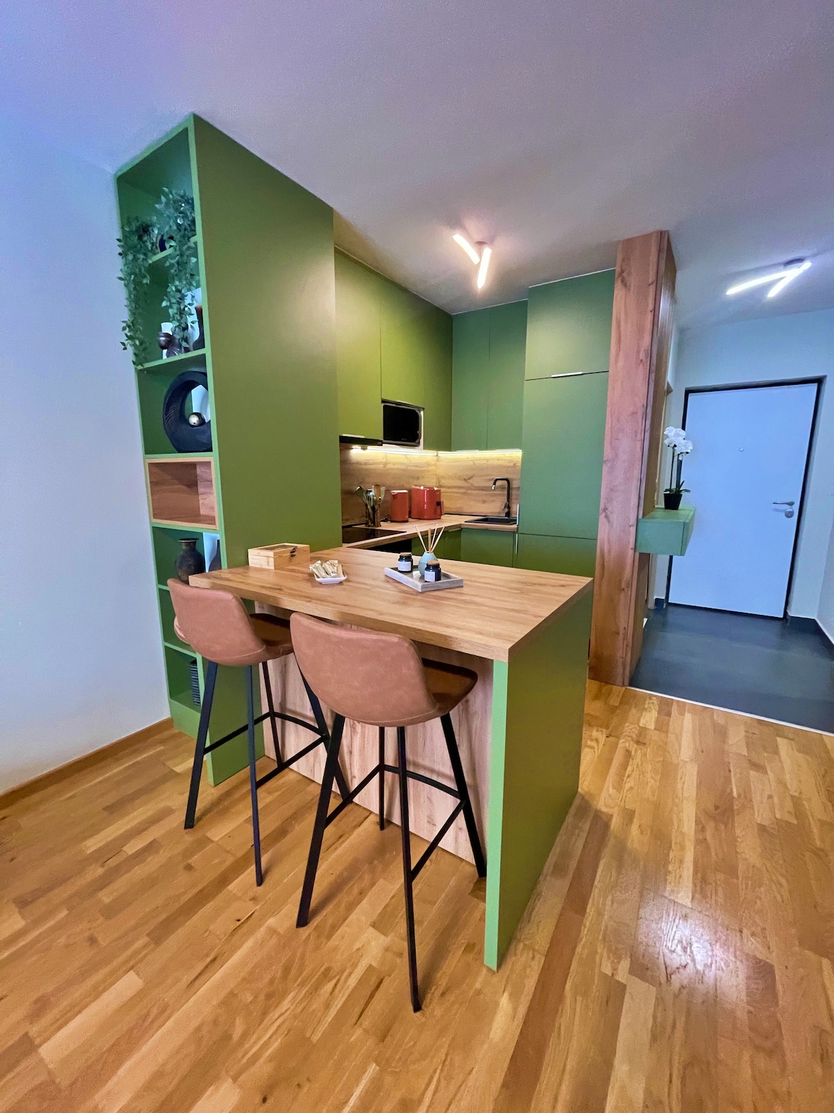 Այս յուրահատուկ վայրն ունի իր ոճը ։ Բարի գալուստ ձեր նորաոճ տուն ։ Այս գեղեցիկ դիզայնով մեկ ննջասենյակով բնակարանն առաջարկում է այն ամենը, ինչ անհրաժեշտ է հարմարավետ և հանգստանալու համար: Անկախ այն բանից ՝ այստեղ եք աշխատանքի, թե հանգստի համար, թաղամասն ունի ամեն ինչ ՝ մթերային խանութներ, ռեստորաններ, սրճարաններ, դեղատներ, բժշկական կենտրոններ, վարսավիրանոցներ և շատ այլ բաներ ՝ բոլորը ոտքով հեռավորության վրա ։ Կայանատեղին գտնվում է մասնավոր ավտոտնակում, ավտոտնակ մուտք գործելու համար օգտագործվում է քարտ-բանալին, իսկ բնակարան մուտք գործելու համար՝ վերելակը։