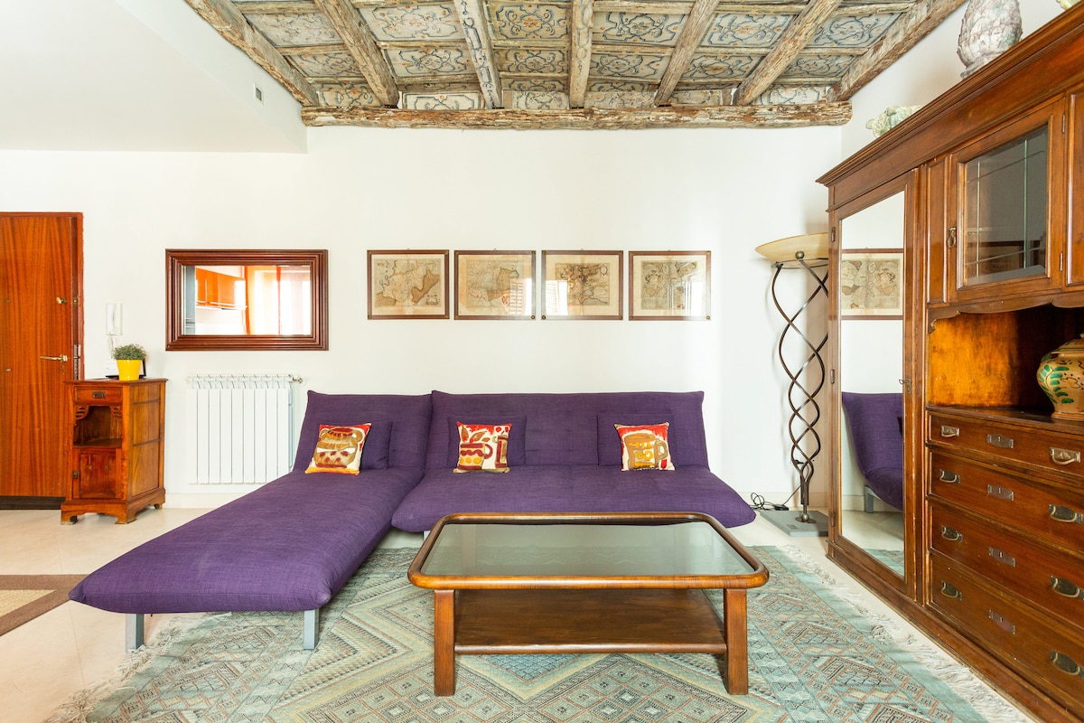 Ընդարձակ և լուսավոր լոֆթ Պալերմոյի սրտում, 17 - րդ դարի շենքի երրորդ հարկում, առանց վերելակի, մի փողոցում, որը տանում է Վիտորիո Էմանուելի միջով դեպի Վուչիրիա: Կենտրոնական վայրը նշանակում է, որ յուրաքանչյուր տեսարժան վայր գտնվում է քայլելու հեռավորության վրա ՝ Պիացցա Մարինայից մինչև Մայր տաճար և Չորս գումար ։ Մեծ հյուրասենյակն ունի առանձին մուտք, առանձին լոգասենյակ, փոքր խոհանոց և պատշգամբ, որտեղից բացվում է հիանալի տեսարան դեպի Լոգիա ։ Այն ունի երկտեղանի մահճակալ ձեղնահարկում և բազմոց - մահճակալ ։