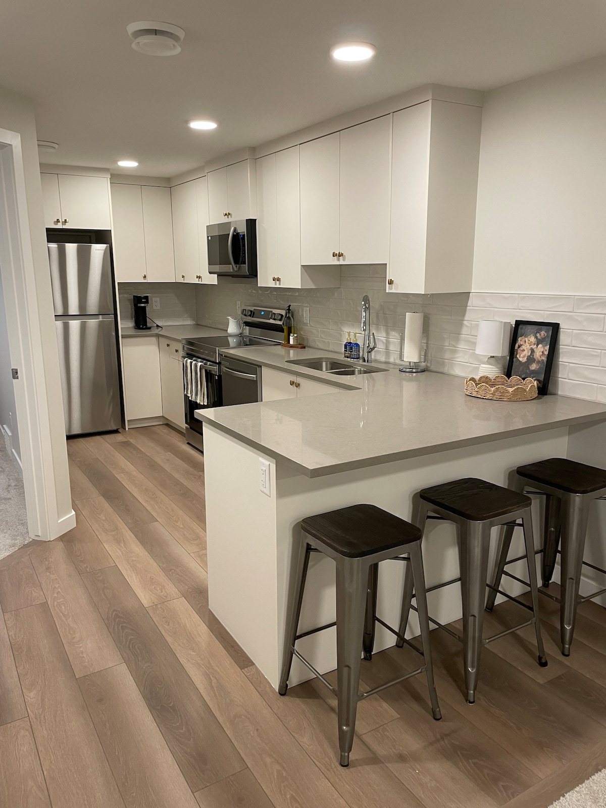 A VERY quiet, ONE-BED Basement (Legal Insured, having Short-Term City Licence). The suite has a Private Side Entrance, self check-in option, has most of amenities to make your stay memorable. Ideally located near Airport/Highway for a quick stop/long stay. Legal suites are inspected by the City to make sure it meets Alberta safety/fire codes. Quiet HOURS 10 p.m. to 7:00 a.m. Please note, cooktop is suitable for light cooking, NO heavy cooking please. NOT SUITABLE FOR INFANTS/CHILDREN.