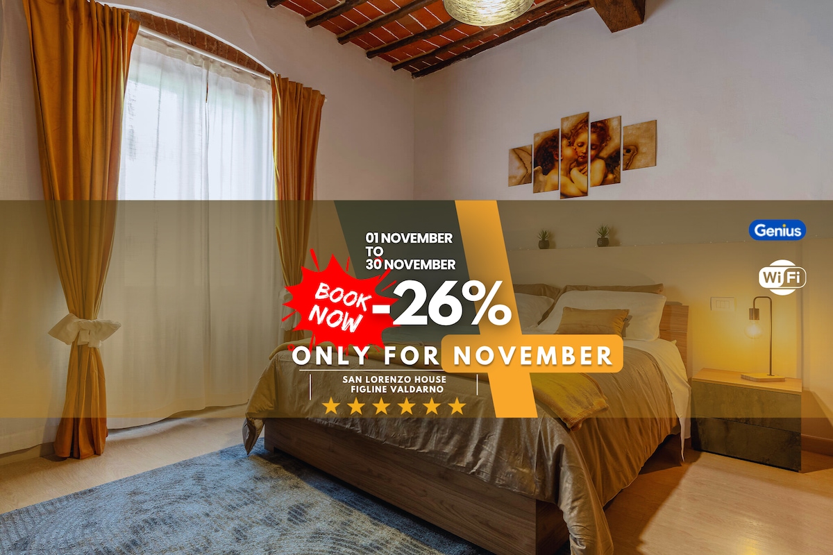 Charming apartment in the heart of Figline Valdarno, in a strategic location between Chianti, Florence, and Arezzo. ✔ Accommodates up to 4 GUESTS ✔ Professional Welcome Book with tips on restaurants and places to visit ✔ 5-minute walk from Figline Valdarno train station and 30-minute drive from Florence ✔ 2 Double bedrooms with dedicated workspaces ✔ 1 Full bathroom and 1 half bathroom ✔ Smart TV, Fiber Wi-Fi, A/C heating & cooling, washing machine