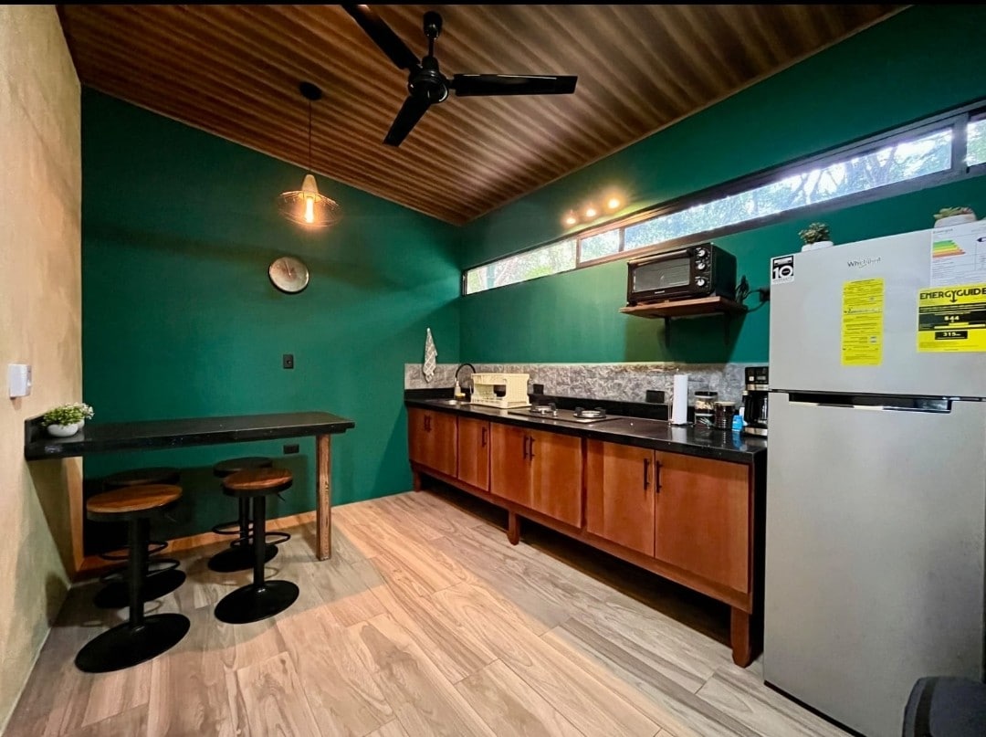 Քնելու համար իջեք և արթնացեք մոտակա անձրևային առուների, օվկիանոսի հեռավոր ալիքների և արևադարձային թռչունների նուրբ բաբախյունը ՝ վերկանգնվող ծառի գագաթներով ։ Այս ժամանակակից, բայց հարմարավետ 1bd/1ba - ն ունի խոհանոցային բոլոր հիմնական պարագաները, խորովածը և շքեղ լոգարանը ՝ ջունգլիների տեսարաններով և կրկնակի ցնցուղի գլխիկներով ։ Դուրս եկեք և մտեք անծայրածիր լողավազան ՝ անհատական լուսավորությամբ և օվկիանոսի տեսարաններով ։ Կապիկները, սահնակները, տուկանները, կոատիները և ջրվեժները շատ են ։ Շրջապատեք ձեզ համերաշխ, կենսունակ, բնական գեղեցկությամբ: