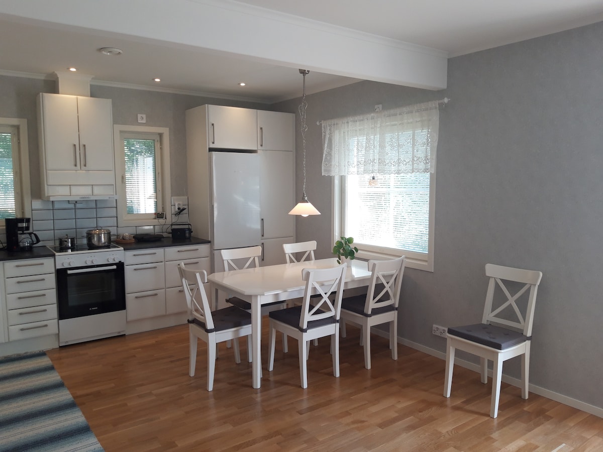 Հյուսիսային Ալանդում ՝ ծովի ափին, կա այս գոհարը ։ Ժամանակակից և ընդարձակ հանգստյան տուն մոտավորապես 100 մ2 մակերեսով ՝ 15 մ2 մակերեսով առանձին հյուրերի քոթեջով, ինչպես նաև սեփական փայտով աշխատող սաունայով լողափի մոտ ։ Մեծ տների համար հարմար տներ արևոտ արևմուտքում ։ Մասնավոր ինքնաթիռ, որը կատարյալ է արևի և լողալու համար ։ Տարածքը Մարիհամնից մոտ 40 կմ հեռավորության վրա է ՝ մինչև սեփականություն տանող ճանապարհը ։ Տունն ունի ամբողջական խոհանոց, ամանալվաց մեքենա, լվացքի մեքենա, սառնարան և սառցարան, բուխարի և օդի ջեռուցման պոմպ ։ Լոգասենյակ ցնցուղով ։ Օթհաուս ։ Կա նաև Wi - Fi ։