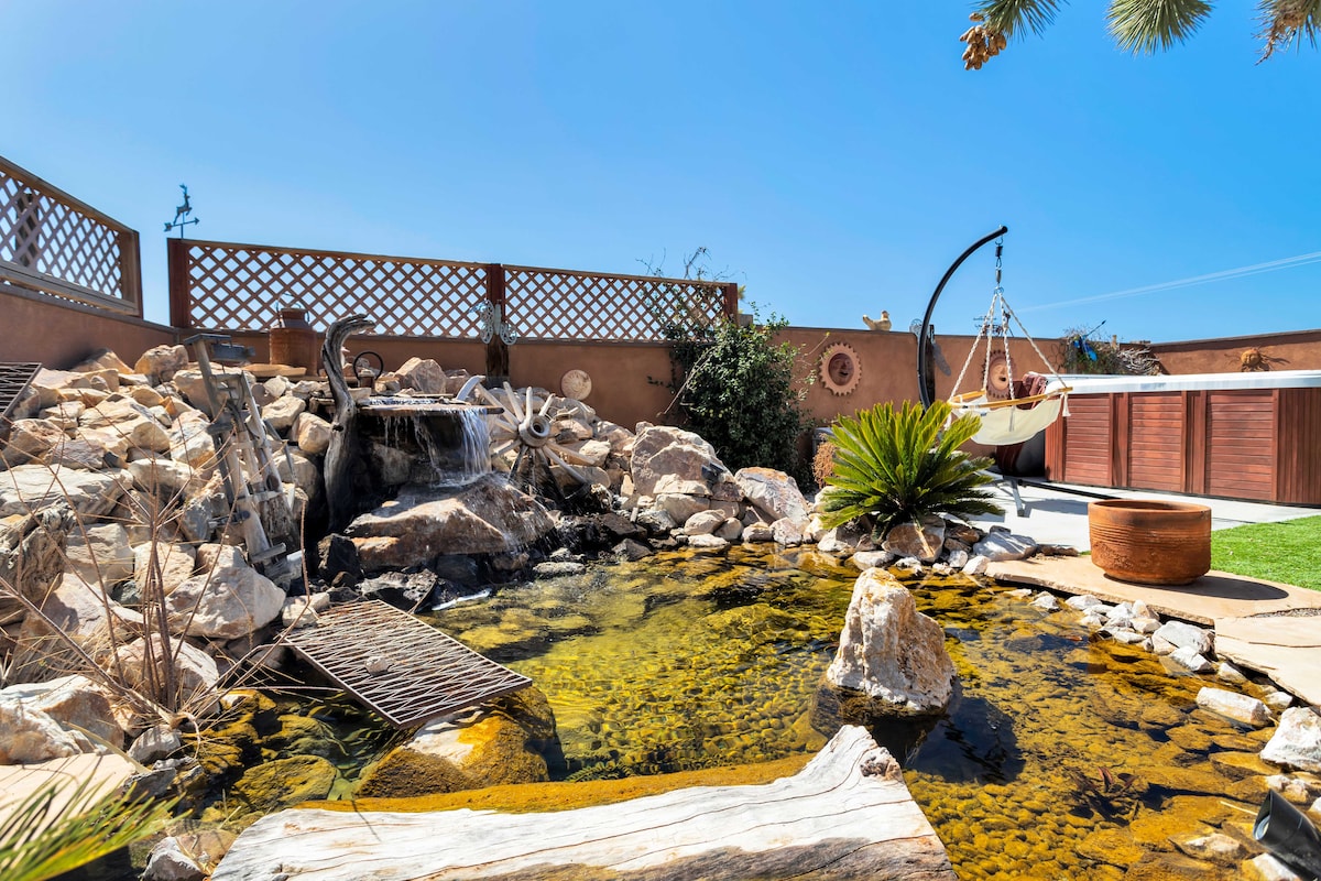 Բարի գալուստ Coral & Cacti Ranch ՝ Ջոշուա Թրի ջունգալո ։ Պատրաստեք սեփական պիցցաները և վայելեք անապատի հիասքանչ տեսարանները՝ դրսի կախովի մահճակալներում։ Թրջվեք մեր ջակուզիում կամ կովբոյական լողավազանում աստղերով լի երկնքում ։ Այս գունագեղ բոհեմական հանգիստը հյուրերի կողմից սիրված է ։ - փայտե կրակե պիցցա ջեռոց - բացօթյա ցնցուղարան - կրակարան - ջակուզի աստղերի տակ - պատիո՝ կախովի մահճակալներով - կովբոյական լողավազան - պրոյեկտոր ՝ հոսքային եղանակով հեռարձակելու համար, բերեք նոթբուք - արագ Wi - Fi - կրկնակի ներսի ցնցուղարան - ցանցաճոճեր Քվեարկվել է որպես Ջոշուա Թրիում գտնվող լավագույն Airbnb տարածքներից մեկը։