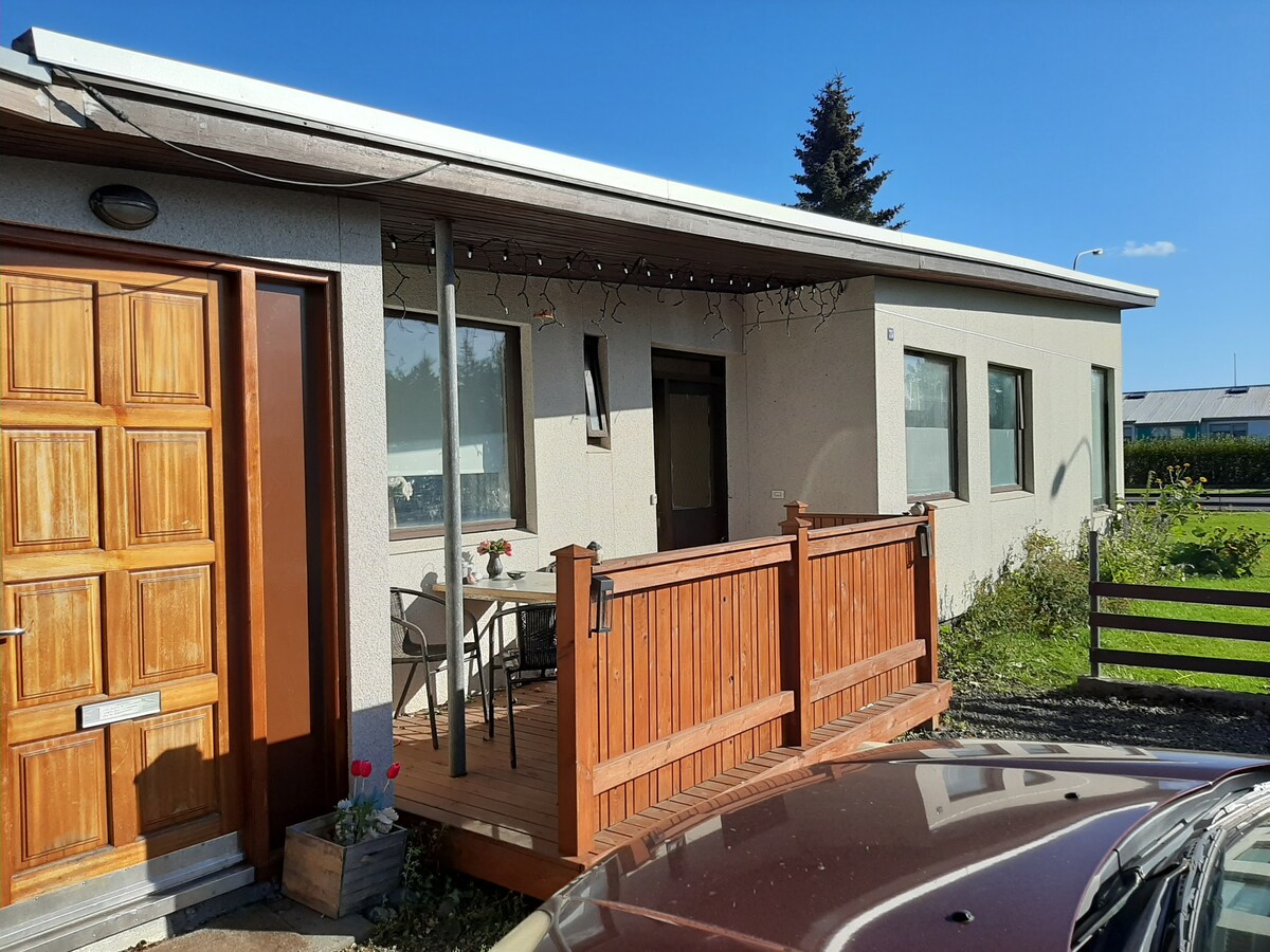 BSG տունը (110 քմ), Engjavegur 75 - ում, 800 Selfoss - ում, 3 ննջասենյակով, նույն գնով, ինչ հյուրանոց - սենյակը: Տուն, ամբողջական սարքավորումներով: Առաջին հարկի տուն ՝ պարտեզով և կտուրով ։ Մեր տարածքը մոտ է ռեստորաններին, բացօթյա լողավազանին, մթերային խանութներին, ձիարշավին: Selfoss - ը լավ է գտնվում և ամենամեծ քաղաքն է Իսլանդիայի հարավում: Իսլանդիայի հարավում կան բազմաթիվ տեսարժան վայրեր այցելուների համար:
