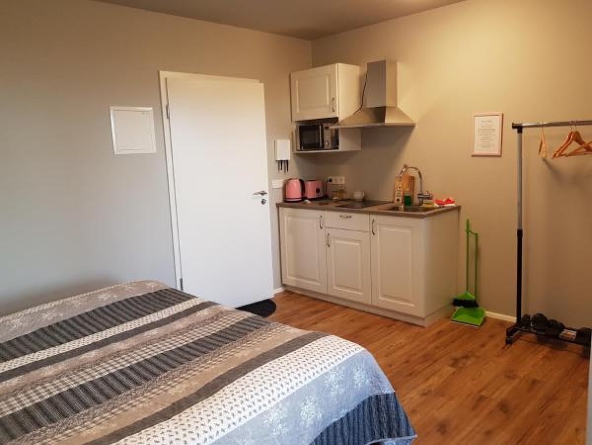 Սենյակի չափը ՝ 17 մ² Այս ստուդիան ունի միկրոալիքային վառարան, տոստեր և առանձին մուտք ։ Սենյակի հարմարություններ ՝ թեյ/սրճեփ, ցնցուղ, վարսահարդարիչ, խոհանոցիկ, սառնարան, գրասեղան, նստատեղ, զուգարան, միկրոալիքային վառարան, լոգասենյակ, լրացուցիչ երկար մահճակալներ (> 2 մետր), ջեռուցում, խոհանոց, առանձին մուտք, ձայնամեկուսացում, սալիկապատ/մարմարե հատակ, տեսարան, փայտե/մանրահատակ, ճաշասենյակ, էլեկտրական թեյնիկ, խոհանոցային պարագաներ, ջեռոց, սալօջախ, տոստեր, պարտեզի տեսարան, տեսարժան վայր, մաքրող միջոցներ, սրբիչներ, սպիտակեղեն, ճաշասեղան, ամբողջ հարկաբաժինը