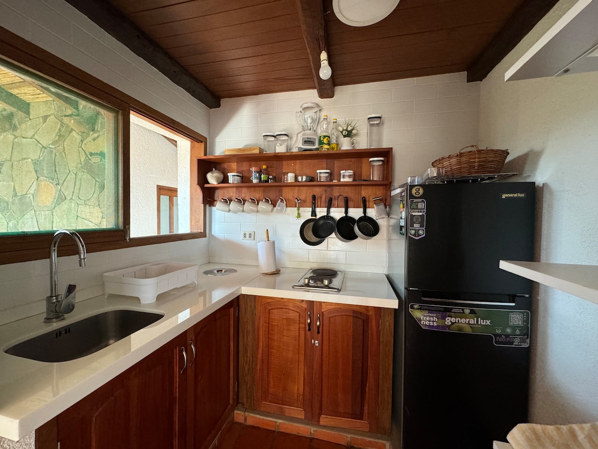 Small 20 square meters house with queen bed, situated on the edge of a 20 meters across artificial lake, this house has its own kitchenette with stove, electric kettle and fridge, it has a private bathroom with hot water. This house has a front and back patio equipped with chairs and coffee tables. All this is part of Casa Samai Boutique, a small hotel situated on a 2.5 hectares peace of paradise.