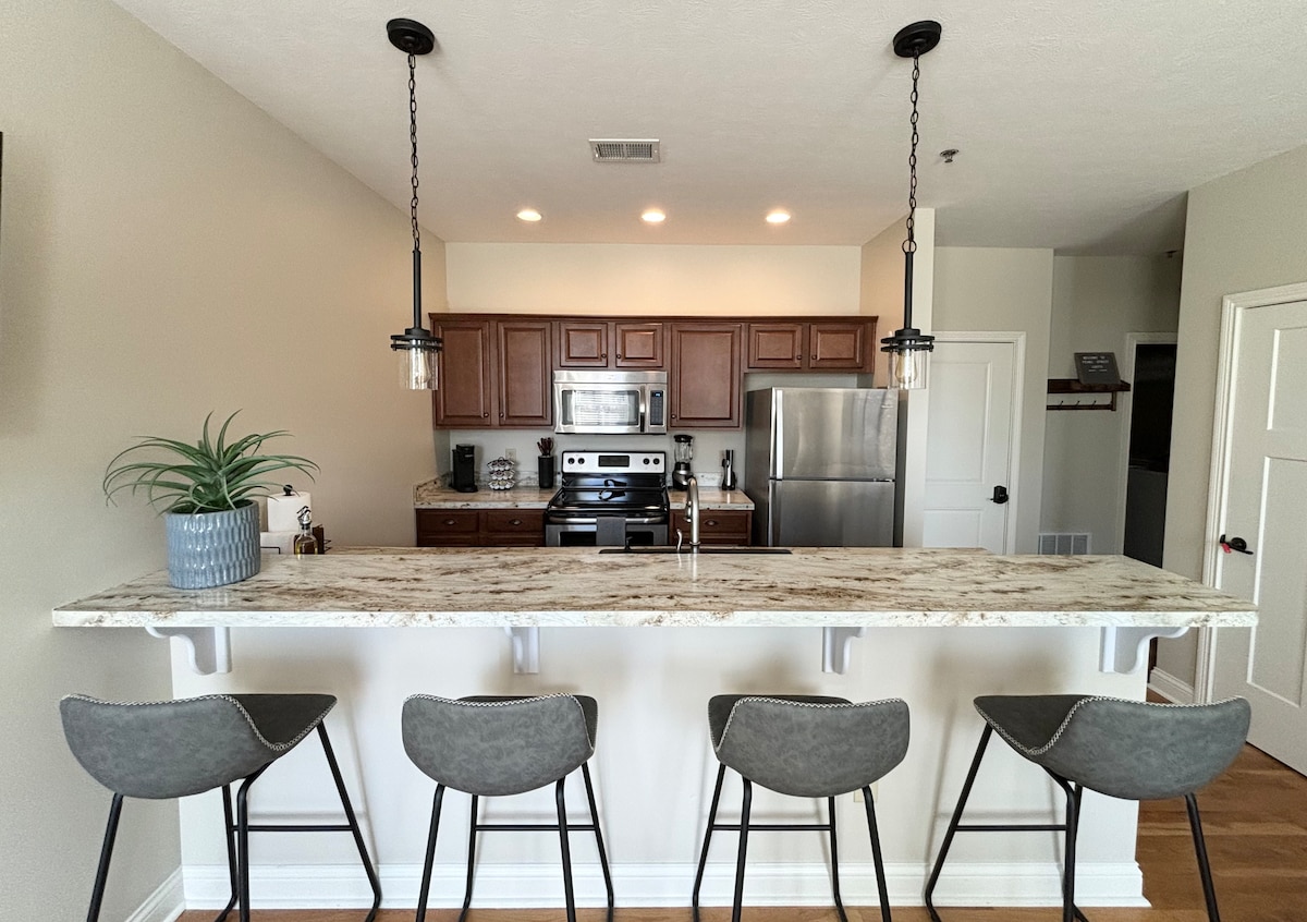 Stylish 1BR apartment in the heart of Downtown New Albany Indiana. This apartment is centrally located to great shops and fantastic dining in downtown New Albany all within walking distance, 10 minutes to Downtown Louisville and the KFC Yum Center, and a short drive to Caesar's Casino. The space features a Queen Bed and Luxury pull out sofa to sleep 4, a well appointed kitchen and plenty of soft towels, 70" Flat Screen TV. Check availability of APT 1 for bigger parties looking to stay close.