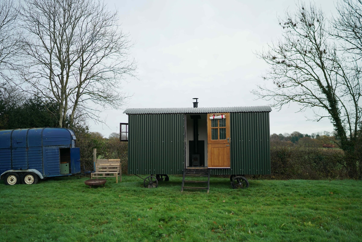 Shepherd hut, wood stove, fire pit, BBQ