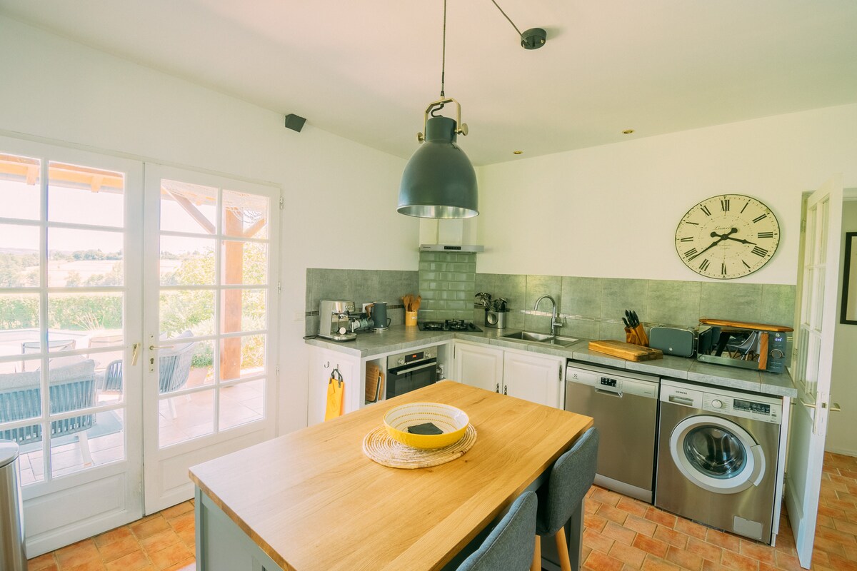 Տուն ամբարով և լողավազանով, որը նայում է դեպի Պիրենեյները