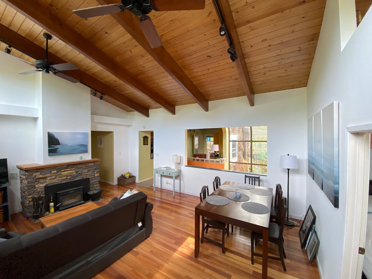 Enjoy a charming and comfortable stay in our thoughtfully remodeled cabin nestled in the trees above the Russian River. Our cabin features vaulted ceilings, large windows, a wood burning fireplace, a large outdoor deck, and fully updated kitchen and bathroom. Located in the heart of Russian River Valley wine country, the cabin is a short walk to River, Mom’s beach, quick drive to many wineries, downtown Guernville, Graton, Healdsburg, Sebastopol, and a 25 min drive to the Sonoma coast.