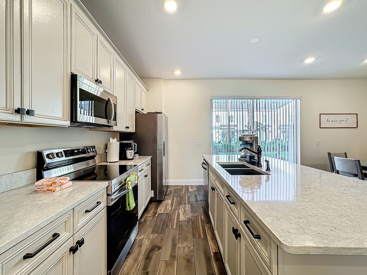 💎 ԳԵՐԱԶԱՆՑ ՎԱՅՐ ԵՎ ԺԱՄԱՆՑԻ ՎԵՐԱԲԵՐՈՒՄ Բարի գալուստ ձեր հանգստի վայր։ Հանգստացեք այս լուսավոր, շքեղ Մարգարիտավիլ վիլլայում, որն ունի 2 առանձին հիմնական սենյակ և փարթամ պարտեզ։ ~5 րոպե մինչև Դիսնեյ, մոտ է Universal, SeaWorld և Օռլանդոյի ամենապահանջված վայրերին։ Վայելեք առանց մեքենայի օր՝ զբոսնեք դեպի Sunset Walk-ի ճաշարանները, խանութները և զվարճանքները, ջրացատկ կատարեք Island H2O LIVE-ում։ Ակվապարկ կամ հանգստի գոտի հանգստավայրի նախասրահի ռեստորանում և բարում՝ բոլորը սեփականության տարածքում։ Ինչ տրամադրություն էլ որ ունենաք, սա ձեր կատարյալ հանգիստն է։🎉
