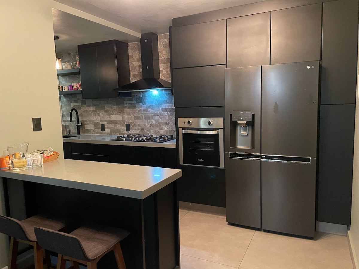 Բնակարանը գտնվում է անվտանգ և հարմարավետ ռազմավարական վայրում։ Այն 5 րոպե քայլելու հեռավորության վրա է 15-րդ դարպասով GNP մարզադաշտի մուտքից։ Նաև 10 րոպե սպորտային պալատից և 8 րոպե AICM-ից։ Ձեր այցելությունը պլանավորելը շատ հեշտ կլինի։ Վայելեք մաքուր տարածքում մնալը, որտեղ կա 24-ժամյա հսկողություն, կա պատշգամբ և գեղեցիկ տեսարան։ Շուրջբոլորը կա ուտելու տարբերակներ կամ պատվիրելու հնարավորություն տնից և սուպերմարկետից։ Մենք չունենք վերելակ կամ կայանատեղի ։ Այնուամենայնիվ, կարող եք մեքենան թողնել շենքի դրսում։