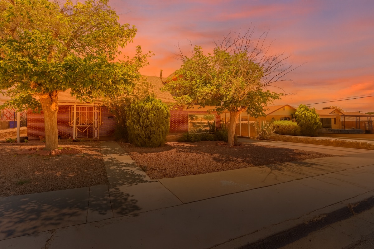 Երեք մահճակալ և երկու ամբողջական լոգասենյակ ՝ ձեր ժամանակը վայելելու և հանգստանալու համար ։ Ճաշակով վերանորոգված, հագեցած ժամանակակից հարմարություններով ։ Հանգստացեք ընդարձակ արևի տակ ՝ շրջապատված փարթամ և աշխույժ բույսերով ։ Վայելեք հետնաբակը ՝ լեռնային տեսարանով, վայրի բնության այցելություններով և շրջակա թաղամասից չանհանգստանալու նվազագույն հնարավորությամբ ։ Օդանավակայանից ընդամենը 15 րոպե հեռավորության վրա, 8 րոպե Fort Bliss - ից և 10 րոպե դեպի գեղատեսիլ լեռնային արահետներ: Հարմար է բոլոր տեսակի ճանապարհորդների համար ։