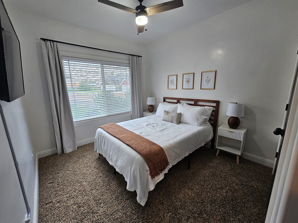 Your group will love being within 2 blocks of Western Park, Uintah Conference Center, and the ice rink. Walk another 3 blocks to local breweries and resturants. Our house is equipped with a full kitchen and everything needed to cook a meal if you choose. Comfy queen size beds in both bedrooms. 42" roku TV in the living room. Living room couch can accommodate 1 more guest.