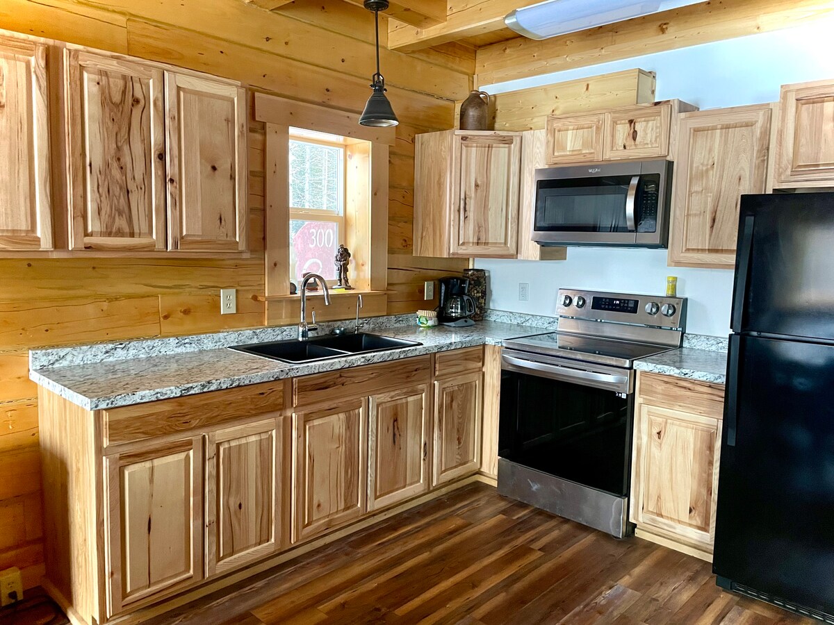 Our Cabin with hot tub is a quiet, and relaxing place. With its own private driveway, no one will bother you during your stay. The cabin offers a fully equipped kitchen, so you can cook a nice meal. We also have a grill on the front porch incase you prefer to grill. Both 1st floor,and the loft have a queen size bed. A washer/dryer in the bathroom just in case you want to throw in that load of laundry. Whether you’re on vacation or just passing by for work, our cabin can accommodate you well.